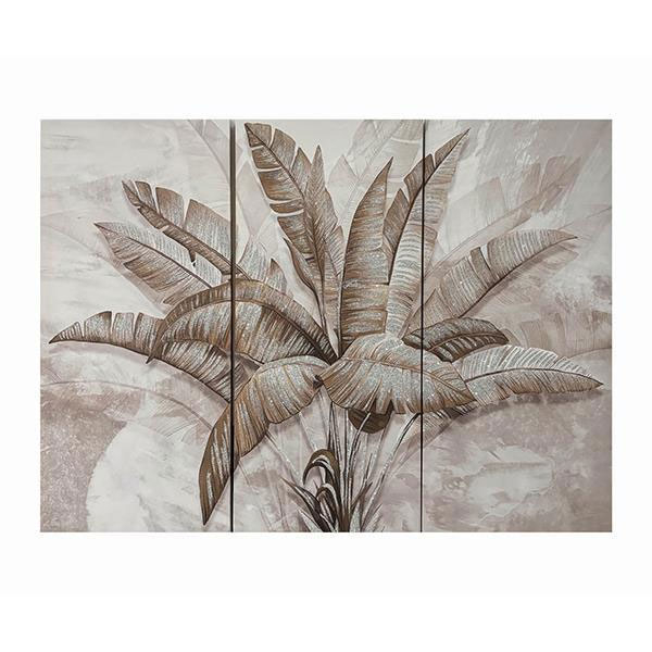 Πίνακας τρίπτυχο από την εταιρεία Estheti σε γκρι φόντο με καφέ σχέδιο. Απεικονίζουν φύλλα φτέρης. Έχει χρυσό γκλίττερ σε κάποια σημεία. Ο καμβάς είναι υφασμάτινος και η πλάτη του πίνακα από ξύλο. Ιδανικός πίνακας για να διακοσμήσει μοναδικά όποιο τοίχο του σπιτιού σας επιθυμείτε. Τοποθετήστε τον σε ένα κενό τοίχο του σπιτιού σας και γεμίστε τον ζωντάνια.