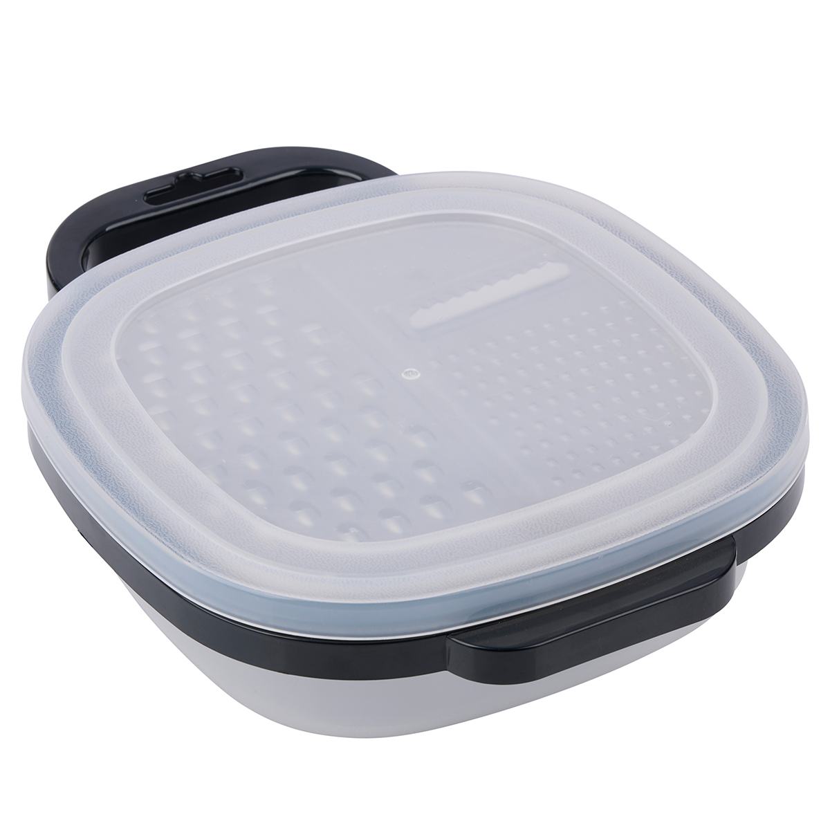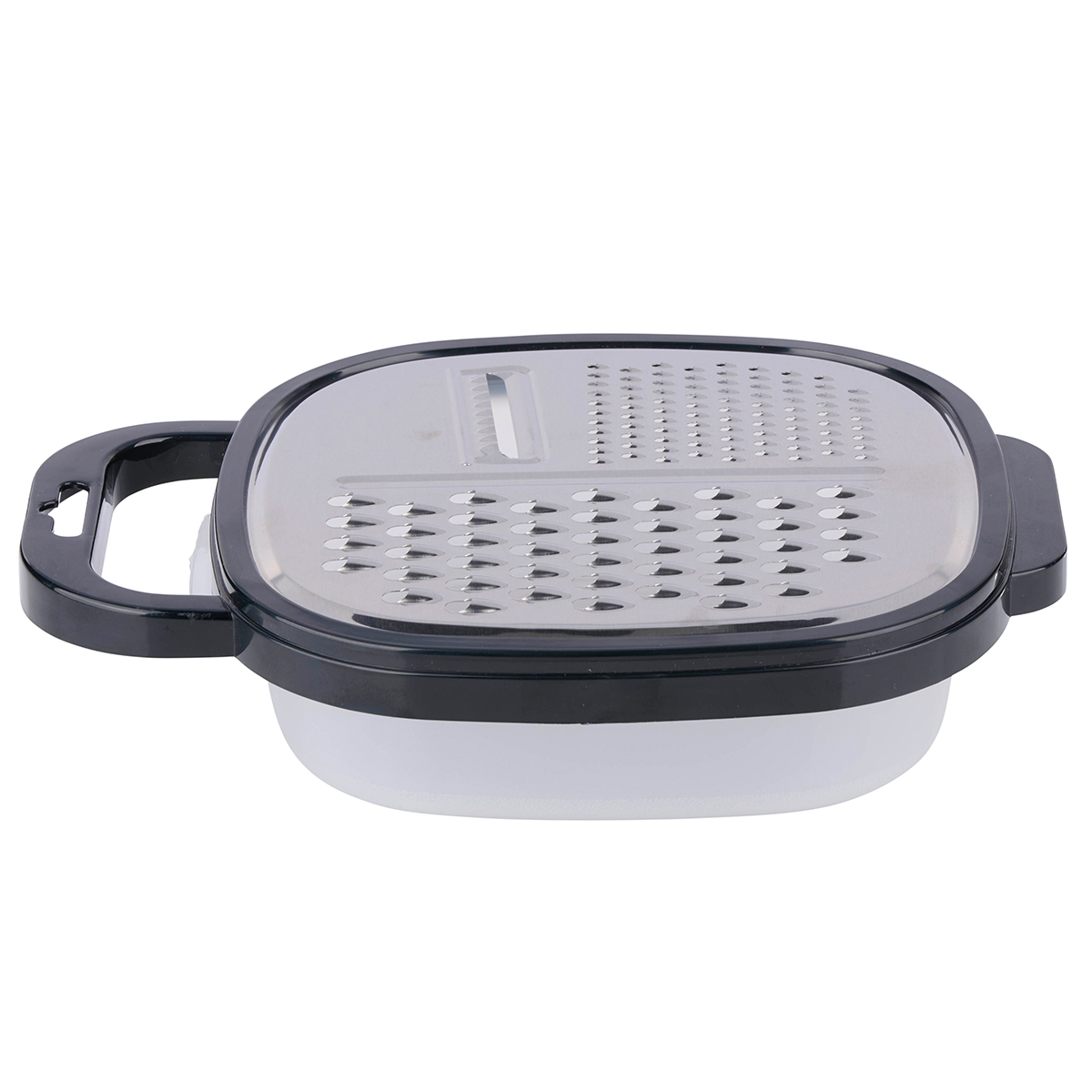 Τρίφτης χειρός με αποθηκευτικό δοχείο και καπάκι από την εταιρεία Alpina. Ο τρίφτης είναι κατασκευασμένος από ανοξείδωτο υλικό κατάλληλο για επαφή με τρόφιμα, ενώ τα υπόλοιπα μέρη είναι πλαστικά σε μαύρο και γκρι χρώμα. Διαθέτει 3 λεπίδες κοπής για να επιλέξετε την κατάλληλη και λαβή για μεγαλύτερη ευκολία κατά τη χρήση. Στο κάτω μέρος έχει δοχείο περισυλλογής. Το καπάκι χρησιμεύει για να το αποθηκεύσετε και για μένουν καθαρές οι λεπίδες όταν δεν το χρησιμοποιείτε. Ιδανικό εργαλείο για κάθε κουζίνα που θα κάνει το μαγείρεμα ευκολότερο.