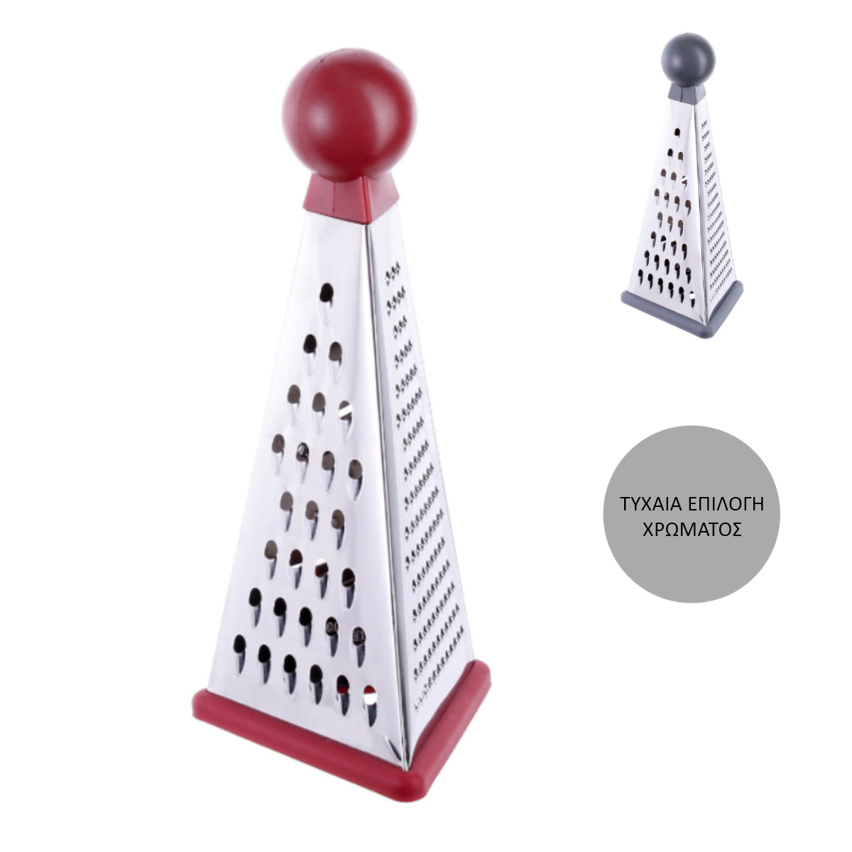 Ανοξείδωτος τρίφτης 3 πλευρών σε σχήμα πυραμίδας. Διαθέτει 3 διαφορετικά κοψίματα. Είναι κατασκευασμένος από ανοξείδωτο υλικό με πλαστικές λεπτομέρειες, είναι πολύ πρακτικό εργαλείο και εύκολο στον καθαρισμό. *Η επιλογή του χρώματος που αποστέλλεται γίνεται τυχαία.*