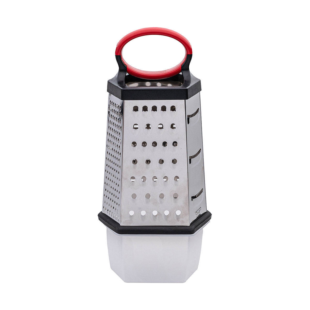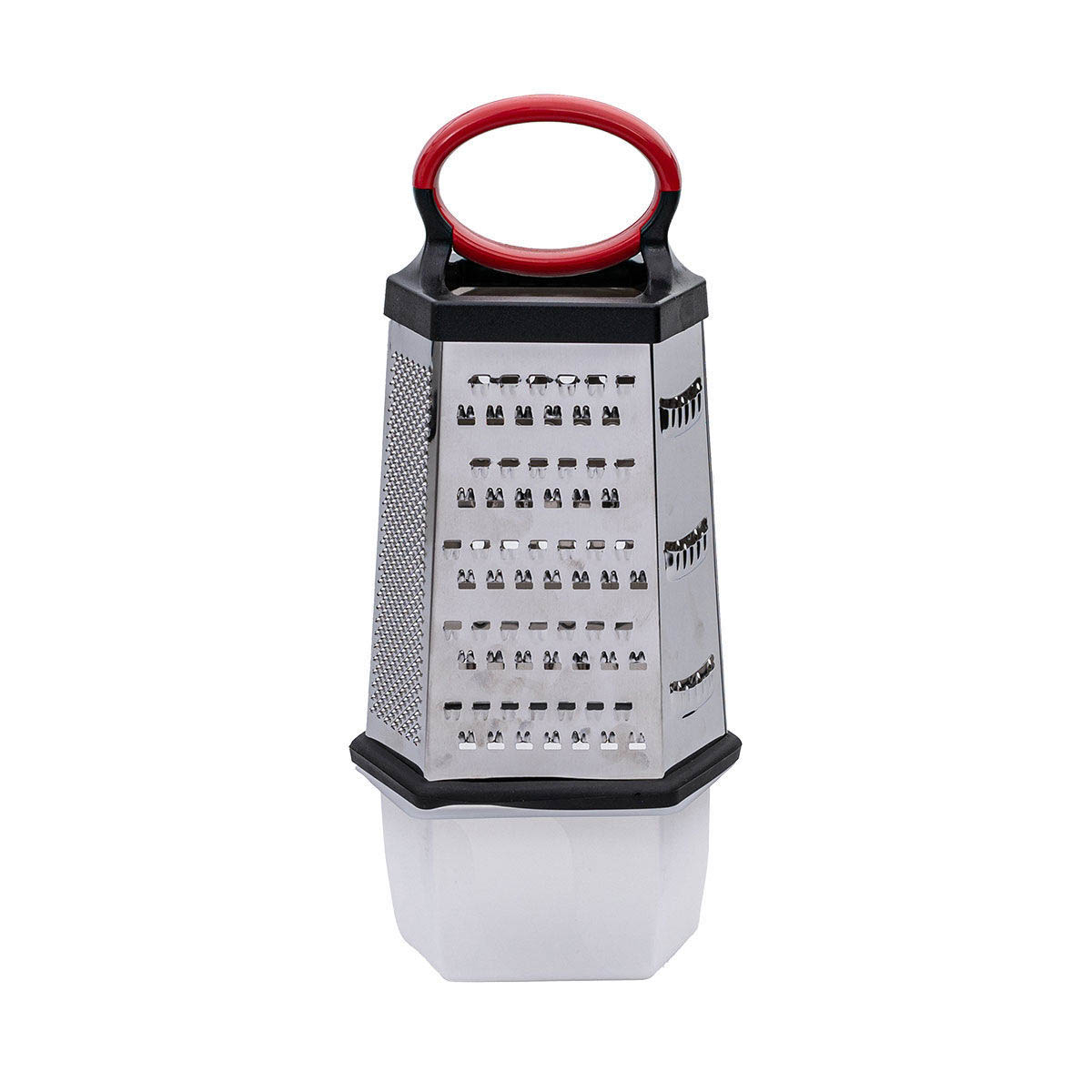 Τρίφτης από την εταιρεία εstia. Είναι κατασκευασμένος από μεταλλικό υλικό και έχει πλαστικό δοχείο στην βάση για να μπαίνουν τα τριμμένα υλικά. Έχει 6 πλευρές τριψίματος για να επιλέξετε αυτή που χρειαζόσαστε σε κάθε παρασκευή.