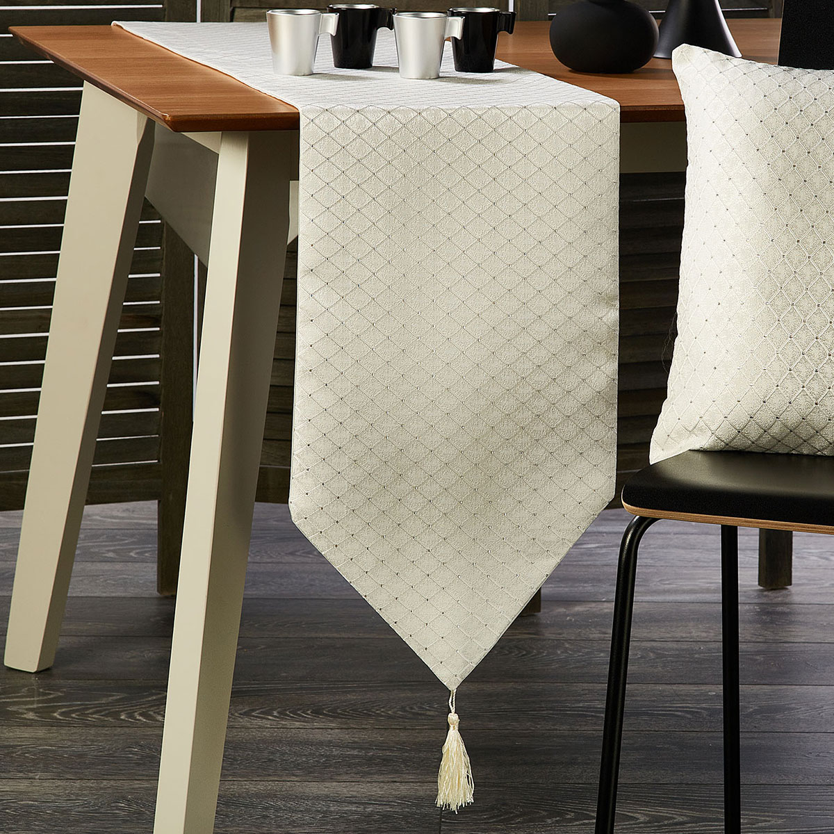 Runner σε ιβουάρ χρώμα από την εταιρεία Whitegg. Έχει μοντέρνο σχέδιο και διακοσμητικές φουντίτσες στο τελείωμα. Ύφασμα από 100% polyester που το κάνει ανθεκτικό και μαλακό. Τοποθετήστε το στο σαλόνι ή την κρεβατοκάμαρα για να διακοσμήσετε μοναδικά τον χώρο σας.