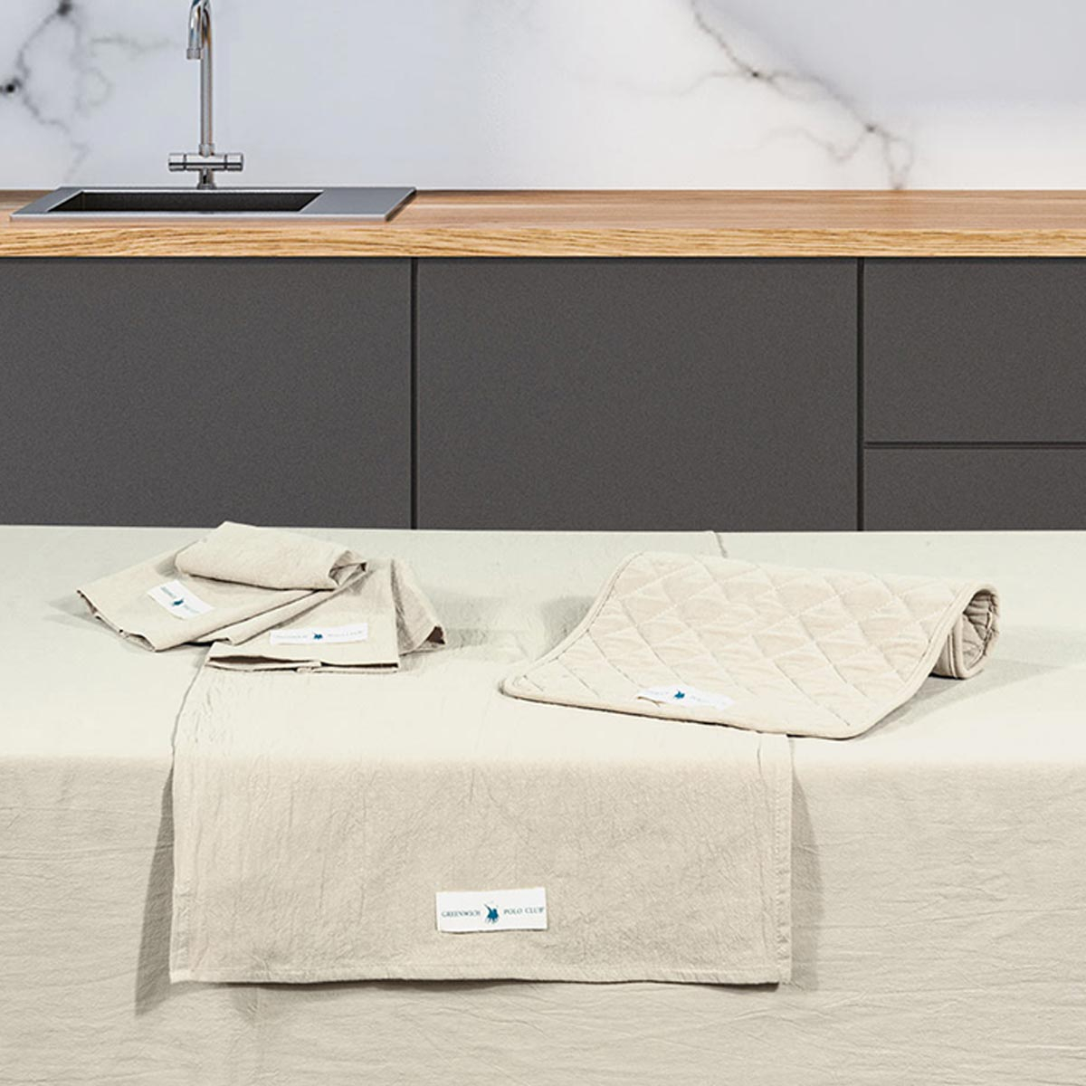 Τραβέρσα σε εκρού χρώμα και μονόχρωμο σχέδιο από την εταιρία Greenwich Polo Club. Είναι κατασκευασμένη από 100% βαμβάκι stonewashed (πετροπλυμένο) που τη καθιστά ανθεκτική και μαλακή. Ανανεώστε τον χώρο της κουζίνας σας και συνδυάστε την με τα υπόλοιπα είδη της ίδιας σειράς για ένα ολοκληρωμένο σετ.