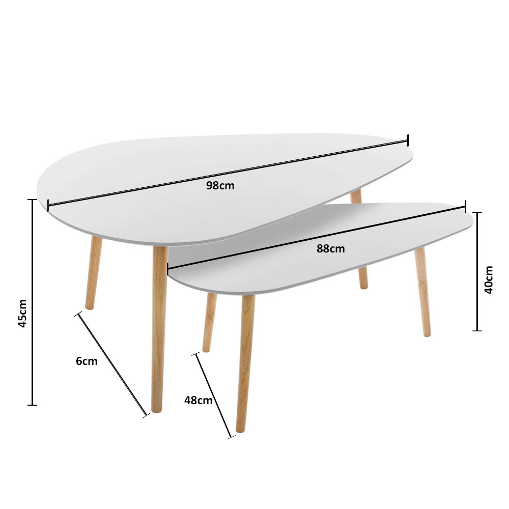 Ζιγκόν τραπεζάκια σε σετ 2 τεμαχίων για το χώρο του σαλονιού σας. Έχουν λευκό που προσδίδει κομψότητα σε κάθε χώρο. Ιδανικά για τοποθέτηση στη μέση του σαλονιού ή σε οποιοδήποτε άλλο σημείο σας ταιριάζουν. Μπορούν να δημιουργήσουν μαζί μια σύνθεση ή να τα χρησιμοποιήσετε χωριστά. Το προϊόν έρχεται αμοντάριστο και περιλαμβάνονται οι οδηγίες συναρμολόγησης.