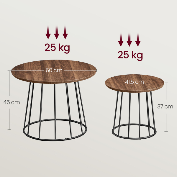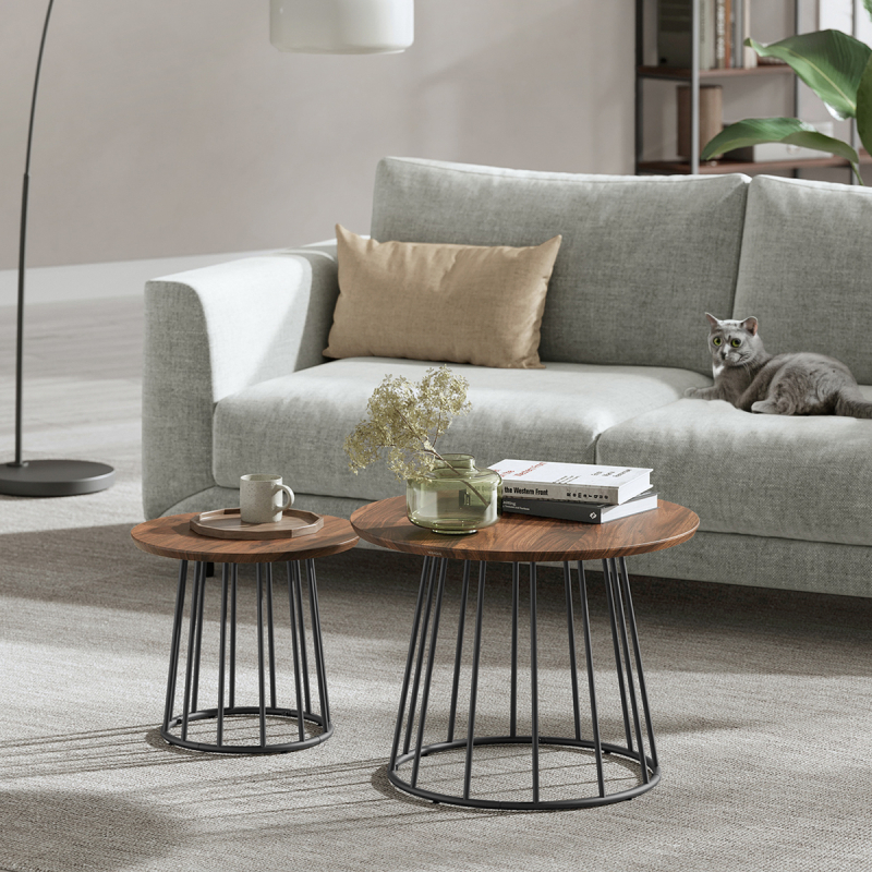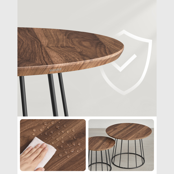 Τραπέζια σαλονιού - μέσης με μοντέρνο σχεδιασμό από την εταιρεία Vasagle. Έχουν μαύρη βάση και επιφάνειες σε χρώμα καρυδιάς. Ιδανικά για το σαλόνι ή σε οποιοδήποτε άλλο χώρο σας ταιριάζουν. Μπορούν να δημιουργήσουν μαζί μια σύνθεση ή να τα χρησιμοποιήσετε μεμονωμένα. Τα προϊόντα έρχονται αμοντάριστα και συναρμολογούνται βάσει οδηγιών.