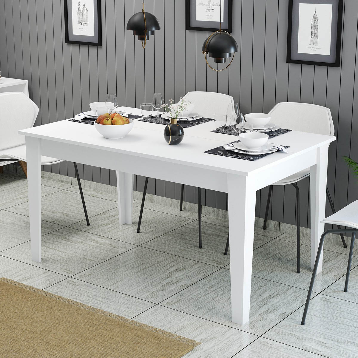 Τραπέζι κουζίνας με μοντέρνο σχεδιασμό σε λευκό χρώμα. Ο εργονομικός σχεδιασμός του σας προσφέρει αποθηκευτικό χώρο για να τοποθετήσετε ένα έξτρα σερβίτσιο, σουπλά, τραπεζομάντηλα ή ότι άλλο θέλετε. Κατασκευασμένο από υψηλής ποιότητας, ανθεκτικά υλικά που προσφέρουν αντοχή στην καθημερινή χρήση. Το προϊόν έρχεται αμοντάριστο και συναρμολογείται βάσει οδηγιών.