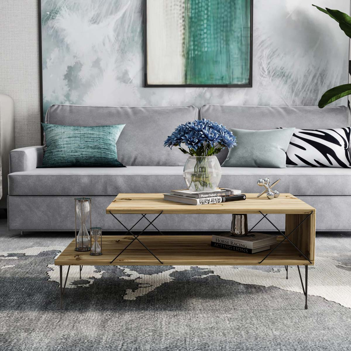 Τραπέζι μέσης σε φυσική απόχρωση ξύλου και μοντέρνο σχεδιασμό. Το πρωτότυπο σχήμα του σας προσφέρει άφθονο χώρο για τα μικροπράγματα, τα βιβλία ή ότι άλλο θέλετε να τακτοποιήσετε. Iδανικό για να στολίσει τον χώρο του καθιστικού σας με ποιότητα και στυλ. Το προϊόν έρχεται αμοντάριστο και συναρμολογείται βάσει οδηγιών.