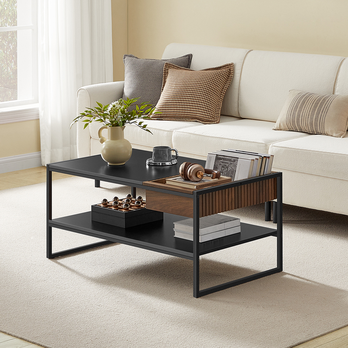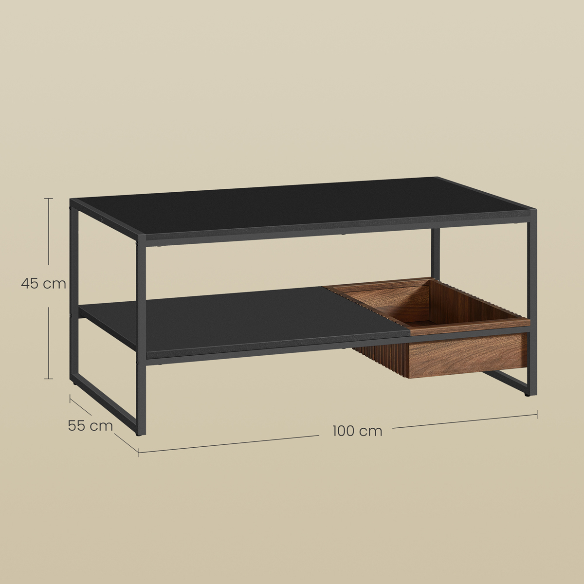 Τραπέζι μέσης με μοντέρνο σχεδιασμό από την εταιρεία Vasagle. Διαθέτει αποθηκευτικό χώρο για να τοποθετήσετε το τηλεχειριστήριο, διάφορα βιβλία, περιοδικά κτλ. Ένα ανθεκτικό και πρακτικό τραπεζάκι σαλονιού που συνδυάζει το στυλ με την ποιότητα. Το προϊόν έρχεται αμοντάριστο και συναρμολογείται βάσει οδηγιών.