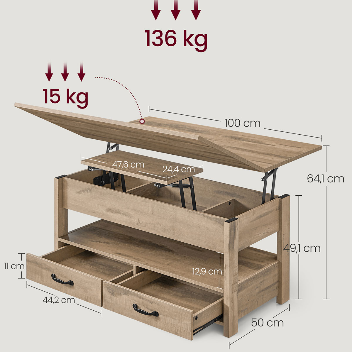 | VasagleΤραπέζι Σαλονιού Με Σερβιτόρο Επεκτεινόμενο (100x50x49.1) Vasagle LCT254L01