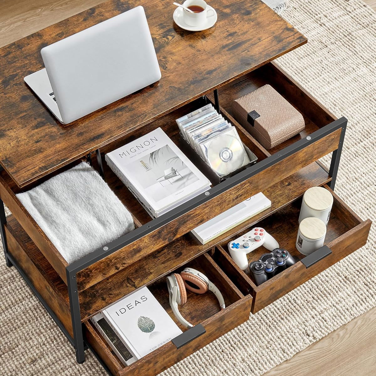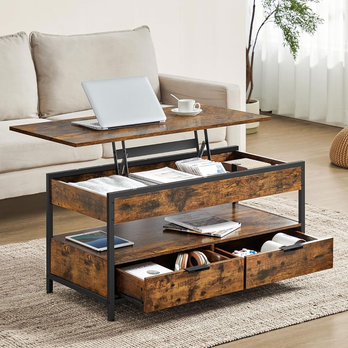 Τραπέζι μέσης σε φυσικό χρώμα και μοντέρνο σχεδιασμό από την εταιρεία Vasagle. Με άφθονο αποθηκευτικό χώρο για τα πράγματά σας και σερβιτόρο για να σας διευκολύνει να φάτε ή ακόμα και να δουλέψετε. Ιδανικό για να προσθέτει στυλ και λειτουργικότητα στο σαλόνι σας. Το προϊόν έρχεται αμοντάριστο και συναρμολογείται βάσει οδηγιών.