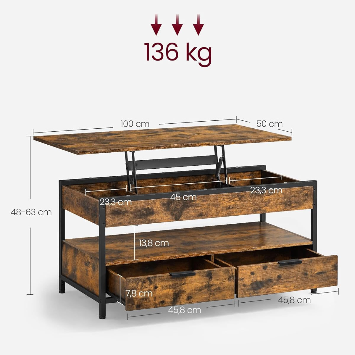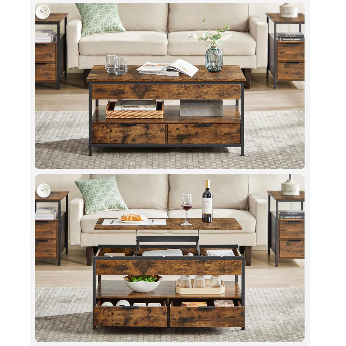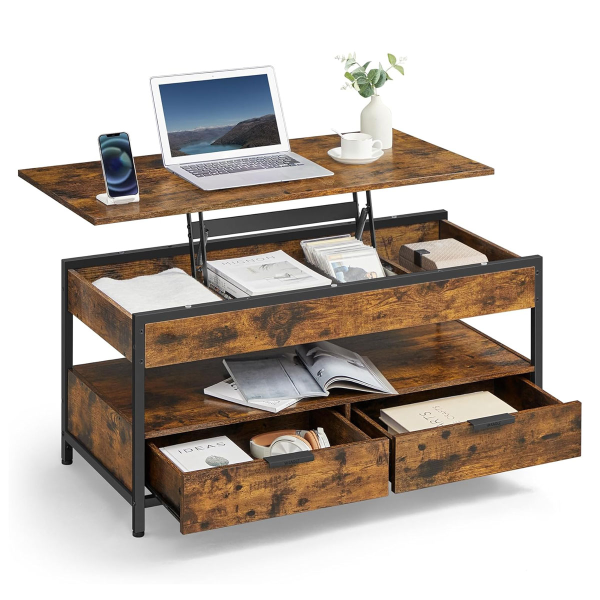| VasagleΤραπέζι Σαλονιού Με Σερβιτόρο & 2 Συρτάρια & Ράφι (100x50x48) Vasagle LCT209K01
