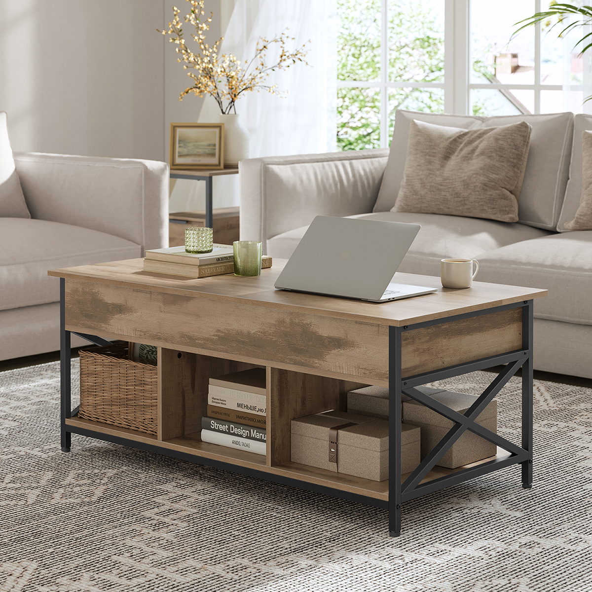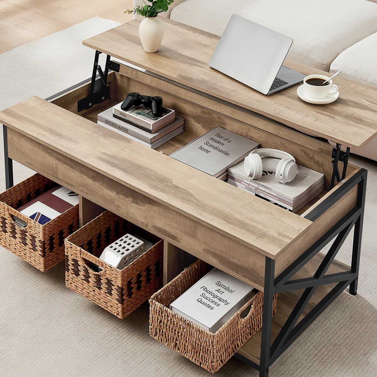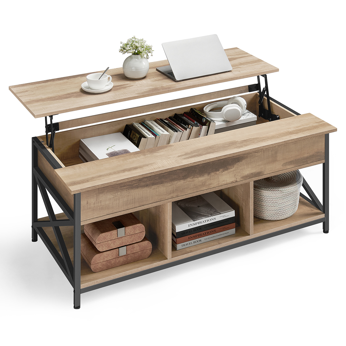Τραπέζι μέσης με μοντέρνο σχεδιασμό από την εταιρεία Vasagle σε μπεζ χρώμα και μαύρο σκελετό. Διαθέτει αποθηκευτικούς χώρους και σερβιτόρο για να ακουμπήσετε το φαγητό ή το laptop σας. Ιδανικό για να προσθέσει στυλ και ποιότητα στο σαλόνι σας. Το προϊόν έρχεται αμοντάριστο και συναρμολογείται βάσει οδηγιών.