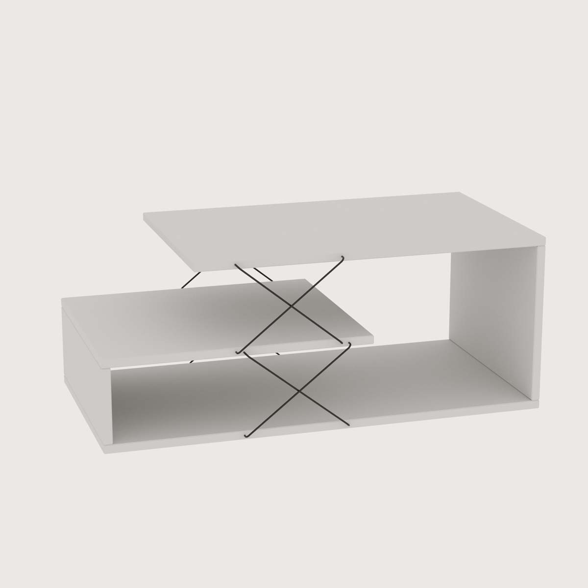 Τραπέζι μέσης σε λευκό χρώμα και μοντέρνο σχεδιασμό. Το πρωτότυπο σχήμα του σας προσφέρει άφθονο χώρο για τα μικροπράγματα, τα βιβλία ή ότι άλλο θέλετε να τακτοποιήσετε. Iδανικό για να στολίσει τον χώρο του καθιστικού σας με ποιότητα και στυλ. Το προϊόν έρχεται αμοντάριστο και συναρμολογείται βάσει οδηγιών.