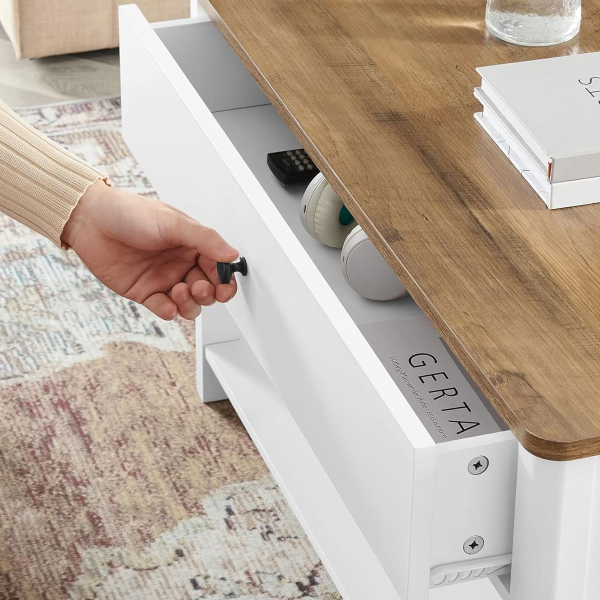 Τραπέζι μέσης σε λευκό χρώμα με μίνιμαλ ύφος από την εταιρεία Vasagle. Με άφθονο αποθηκευτικό χώρο για να τοποθετήσετε το τηλεχειριστήριο, βιβλία, περιοδικά κτλ. Ιδανικό για να προσθέτει στυλ και ποιότητα στο σαλόνι σας. Το προϊόν έρχεται αμοντάριστο και συναρμολογείται βάσει οδηγιών.