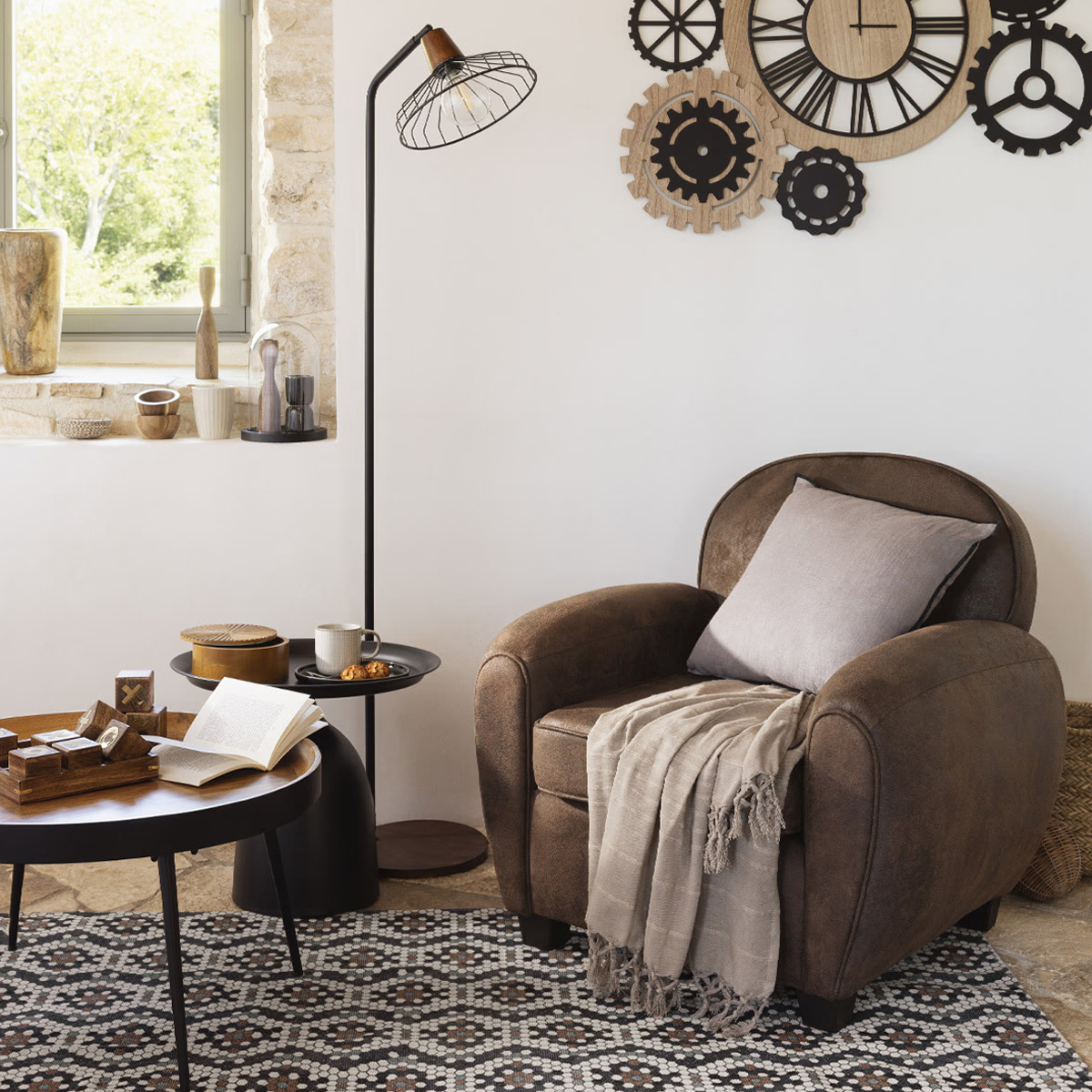 Στρογγυλό τραπέζι μέσης για το χώρο του σαλονιού σε καφέ φυσική απόχρωση και τα μαύρα πόδια. Χαρίζει επιβλητικό ύφος στο καθιστικό σας και συνδυάζεται εύκολα με διάφορα στυλ διακόσμησης. Το προϊόν έρχεται αμοντάριστο και συναρμολογείται βάσει οδηγιών.