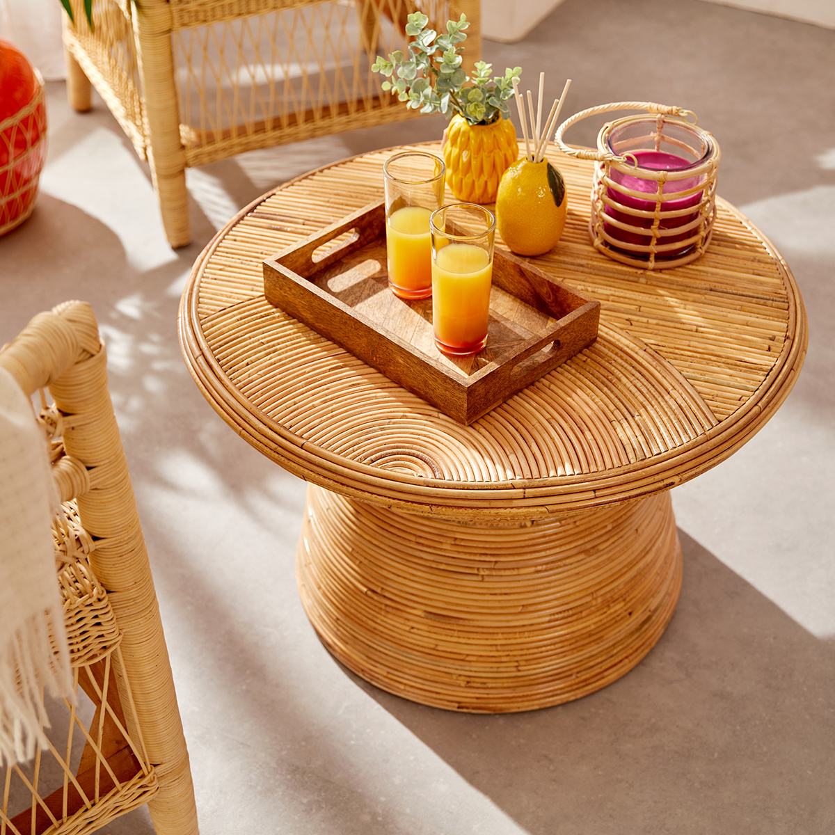 Τραπέζι μέσης για το χώρο του σαλονιού με μοντέρνο ύφος σε μπεζ χρώμα. Έχει ζεστή, εξωτική όψη που ταιριάζει τέλεια σε εσωτερικούς χώρους που επιθυμούν να δημιουργήσουν μια χαλαρωτική και φυσική ατμόσφαιρα. Μπορεί να τοποθετηθεί στο κέντρο του σαλονιού μπροστά από τον καναπέ για τον καφέ, τα ποτά, τα βιβλία ή τα διακοσμητικά σας. Το προϊόν έρχεται μονταρισμένο.