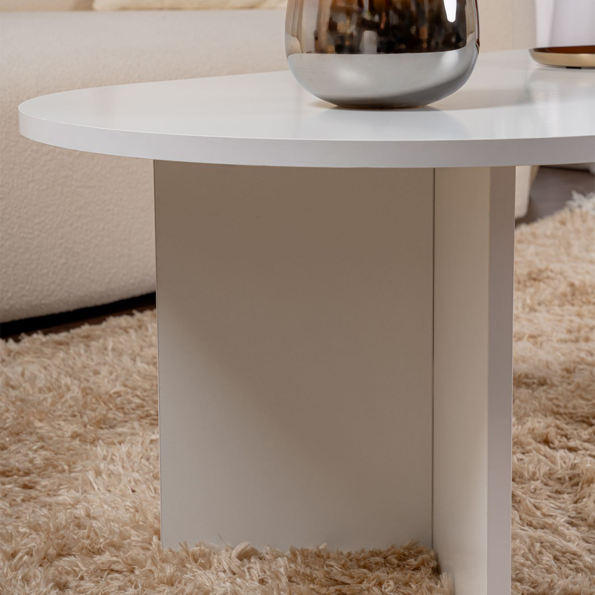 Τραπέζι μέσης σαλονιού με οβάλ σχήμα σε λευκό χρώμα. Συνδυάζει εργονομία και διαχρονικό design, προσφέροντας σταθερότητα και πρακτικότητα στην καθημερινή χρήση. Ένα μοντέρνο τραπεζάκι που θα ταιριάξει μοναδικά στο σαλόνι σας. Το προϊόν έρχεται αμοντάριστο και συναρμολογείται βάσει οδηγιών.