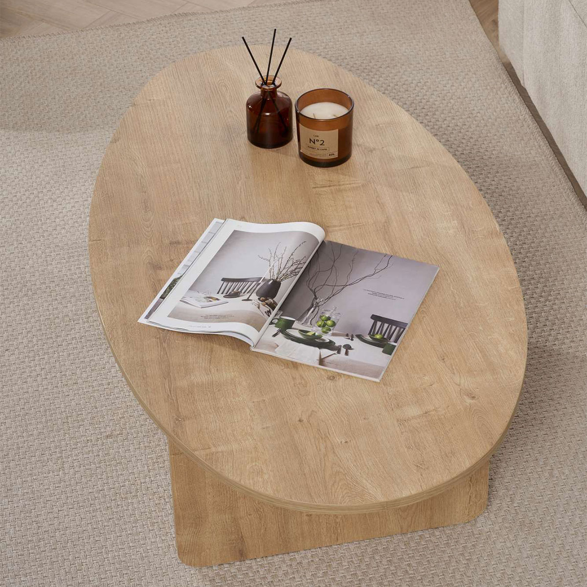Τραπέζι μέσης σαλονιού με οβάλ σχήμα σε απόχρωση δρυός. Σχεδιασμένο ώστε να συνδυάζει εργονομία και διαχρονικό design, προσφέροντας σταθερότητα και πρακτικότητα στην καθημερινή χρήση. Ένα μοντέρνο τραπεζάκι που θα ταιριάξει μοναδικά στο σαλόνι σας. Το προϊόν έρχεται αμοντάριστο και συναρμολογείται βάσει οδηγιών.