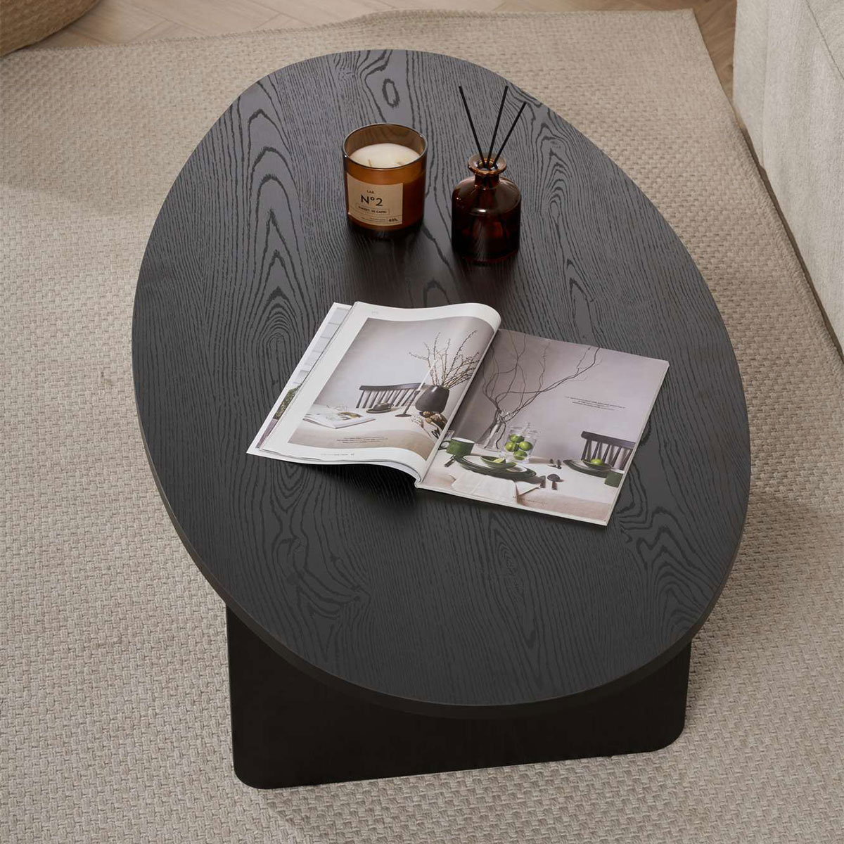 Τραπέζι μέσης σαλονιού με οβάλ σχήμα σε μαύρο χρώμα. Σχεδιασμένο ώστε να συνδυάζει εργονομία και διαχρονικό design, προσφέροντας σταθερότητα και πρακτικότητα στην καθημερινή χρήση. Ένα μοντέρνο τραπεζάκι που θα ταιριάξει μοναδικά στο σαλόνι σας. Το προϊόν έρχεται αμοντάριστο και συναρμολογείται βάσει οδηγιών.