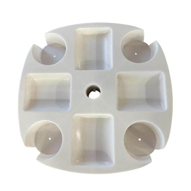 Τραπεζάκι για ομπρέλα θαλάσσης από την εταιρεία Campo. Προσαρμόζεται σε ομπρέλες με διάμετρο από 2.5εκ. έως 4εκ. Είναι κατασκευασμένο από ενισχυμένο πολυπροπυλένιο σε λευκό χρώμα, με προστασία UV, που δεν σπάει εύκολα. Έχει 4 ποτηροθήκες και 4 θήκες για τα σνάκ και τα προσωπικά σας αντικείμενα.