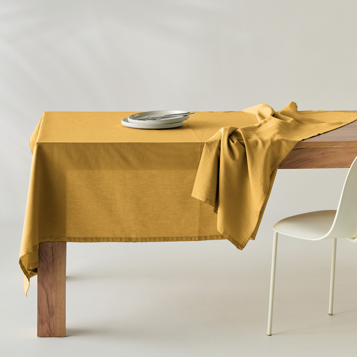 Τραπεζομάντηλο 140x140 από την εταιρεία Kentia σε απόχρωση ώχρας. Το ύφασμα είναι από 100% βαμβάκι βάρους 160gsm, με ανάλαφρη αίσθηση και υψηλή αντοχή. Ένα ξεχωριστό τραπεζομάντηλο που θα ανανεώσει το τραπέζι της κουζίνας, του κήπου ή της τραπεζαρίας σας.