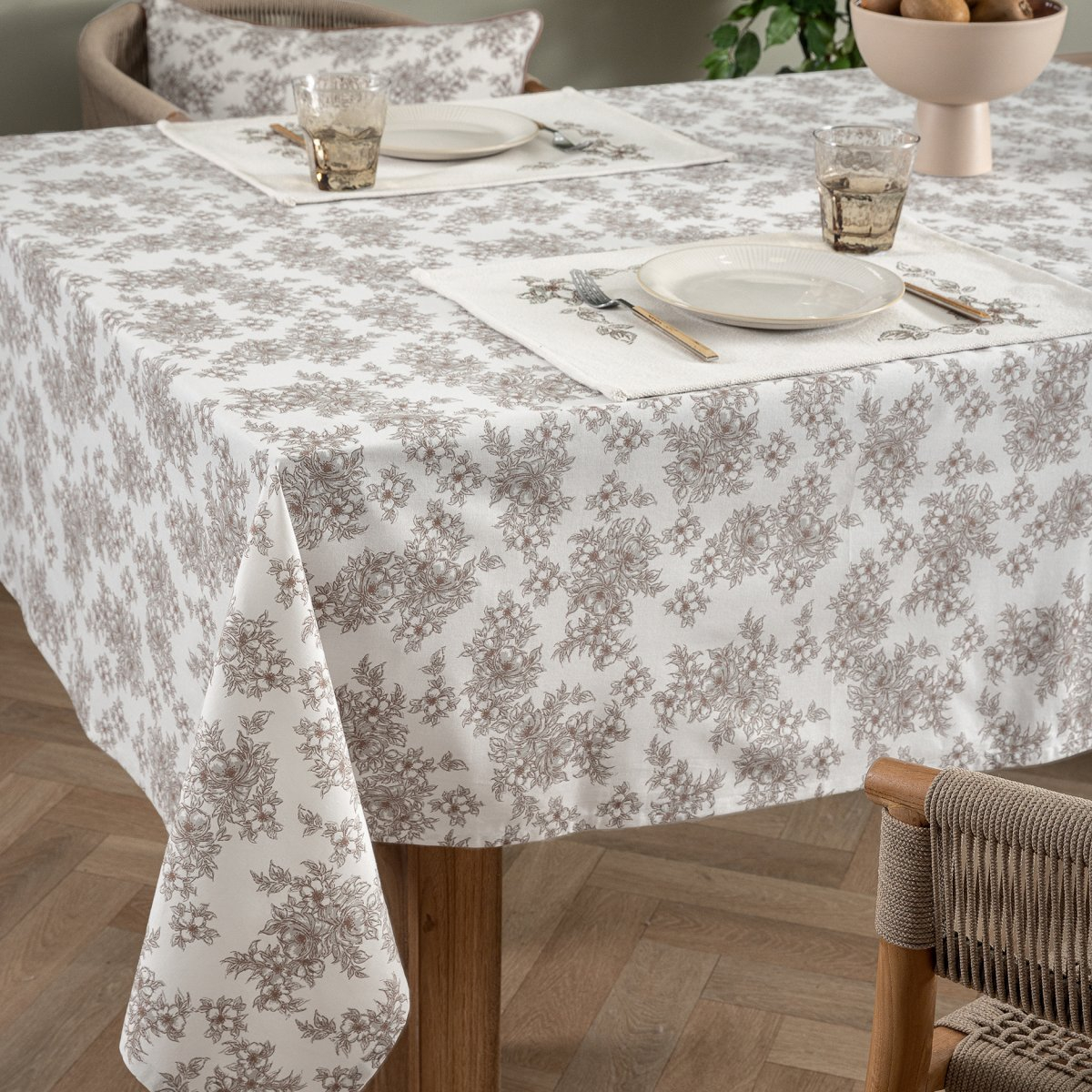 Τραπεζομάντηλο 140x180 της εταιρείας Palamaiki σε εκρού απόχρωση με καφέ λεπτομέρειες και φλοράλ σχέδιο. Είναι κατασκευασμένο από 100% βαμβάκι, απαλό και ανθεκτικό. Ένα τραπεζομάντηλο που θα στολίσει το τραπέζι της κουζίνας ή της τραπεζαρίας σας σε κάθε περίσταση.