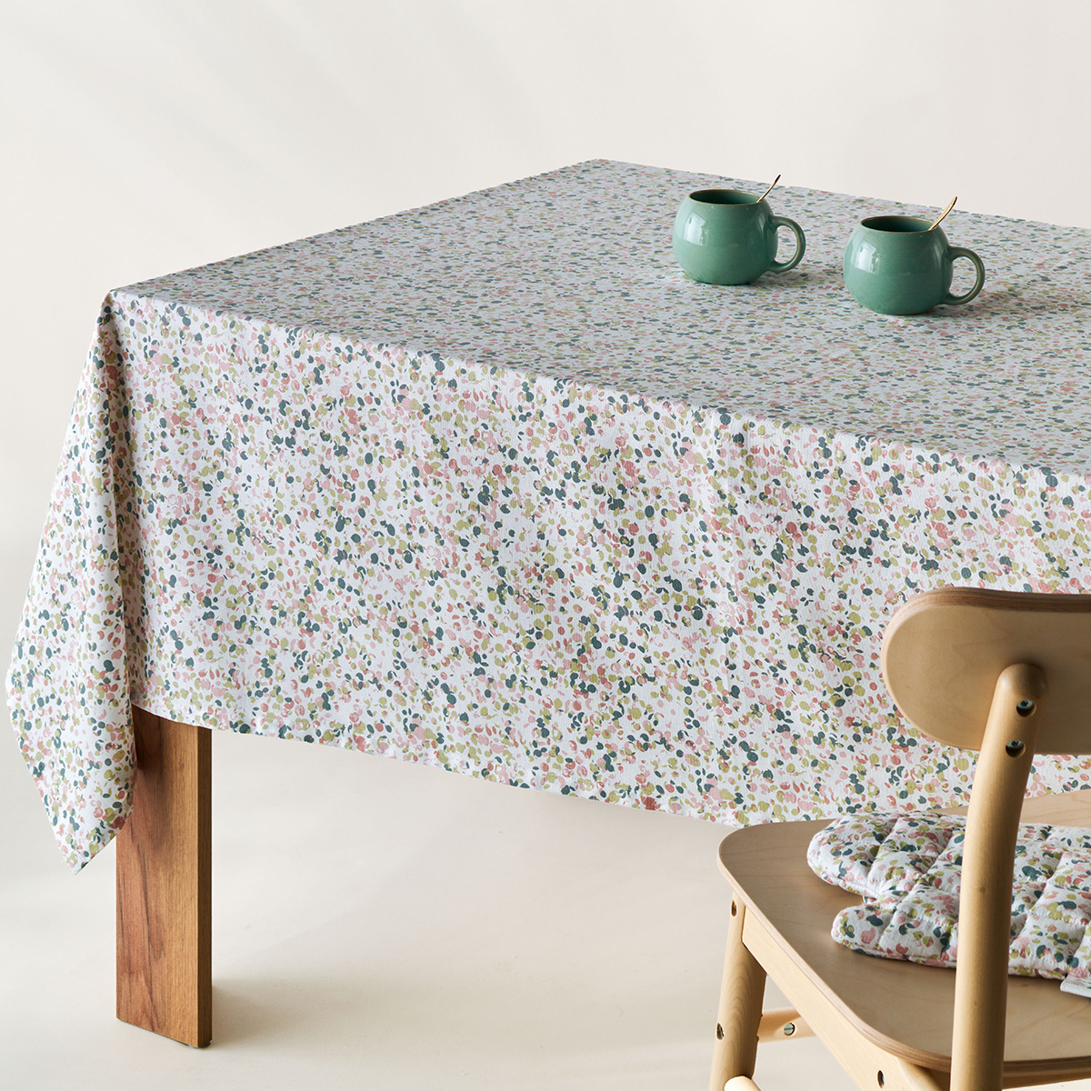 Τραπεζομάντηλο 140x220 από την εταιρεία Kentia σε λευκό χρώμα με φλοράλ σχέδιο σε πράσινο-ροζ-μπλε χρώμα. Το ύφασμα είναι από 100% βαμβάκι βάρους 160gsm, με ανάλαφρη αίσθηση και υψηλή αντοχή. Ένα ξεχωριστό τραπεζομάντηλο που θα ανανεώσει το τραπέζι της κουζίνας, του κήπου ή της τραπεζαρίας σας.