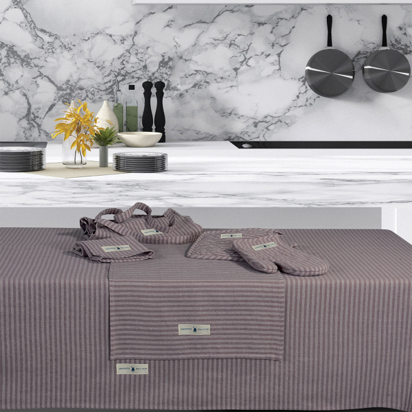 Τραπεζομάντηλο 140x240 σε λιλά χρώμα και ριγέ σχέδιο από τον οίκο Greenwich Polo Club. Κατασκευασμένο από 100% βαμβάκι που το καθιστά ανθεκτικό και μαλακό. Ανανεώστε τον χώρο της κουζίνας σας και συνδυάστε το με τα υπόλοιπα είδη της ίδιας σειράς για ένα ολοκληρωμένο αποτέλεσμα.