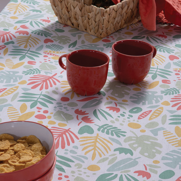 Τραπεζομάντηλο 140x240 από την εταιρεία Nef-Nef με tropical σχέδιο σε πράσινες-πολύχρωμες αποχρώσεις. Είναι κατασκευασμένο από 50% βαμβάκι και 50% polyester τύπου half Panama βάρους 185gsm, που το κάνει ανθεκτικό και εύκολο στο καθάρισμα. Ένα τραπεζομάντηλο που θα στολίσει το τραπέζι σας σε κάθε περίσταση.