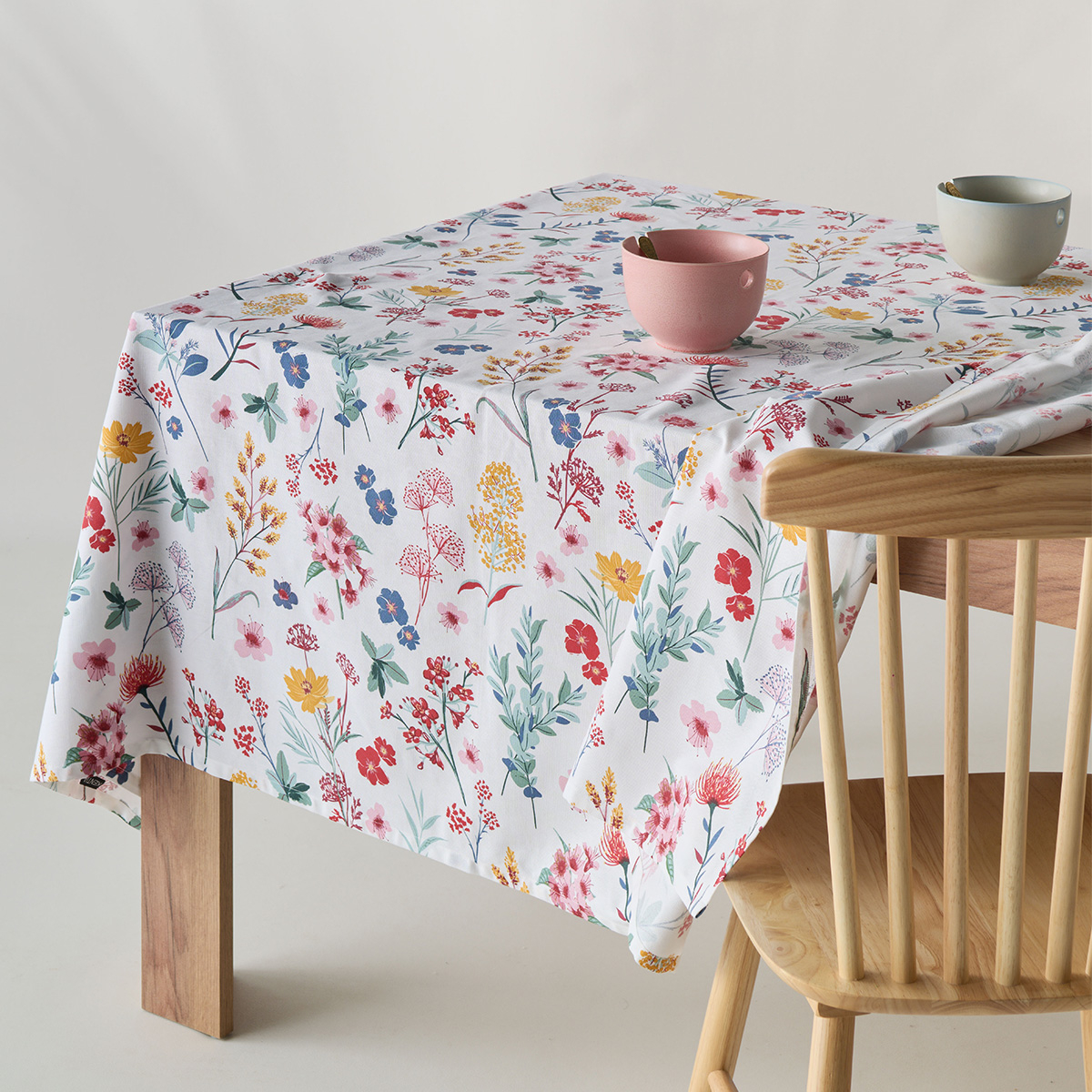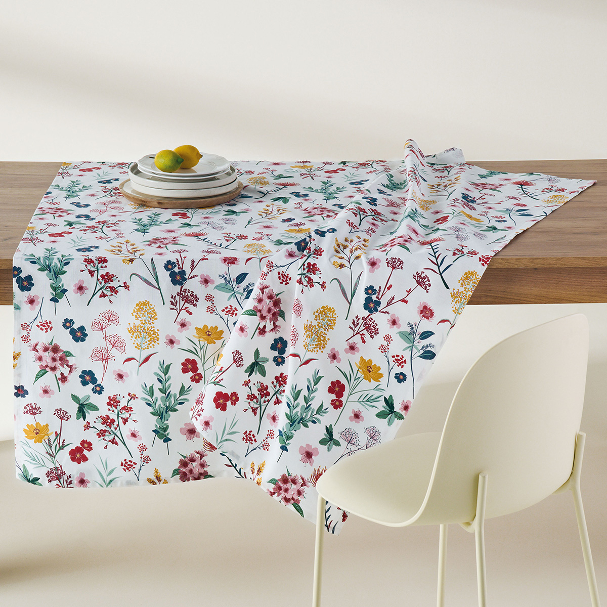 Τραπεζομάντηλο 140x260 από την εταιρεία Kentia σε λευκό χρώμα με πολύχρωμο φλοράλ σχέδιο. Το ύφασμα είναι από 100% βαμβάκι βάρους 160gsm, με ανάλαφρη αίσθηση και υψηλή αντοχή. Ένα ξεχωριστό τραπεζομάντηλο που θα ανανεώσει το τραπέζι της κουζίνας, του κήπου ή της τραπεζαρίας σας.