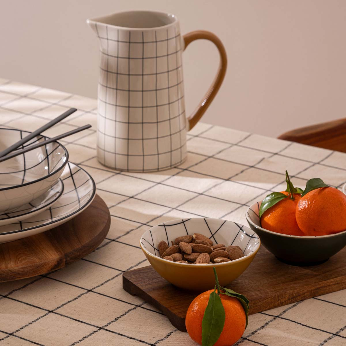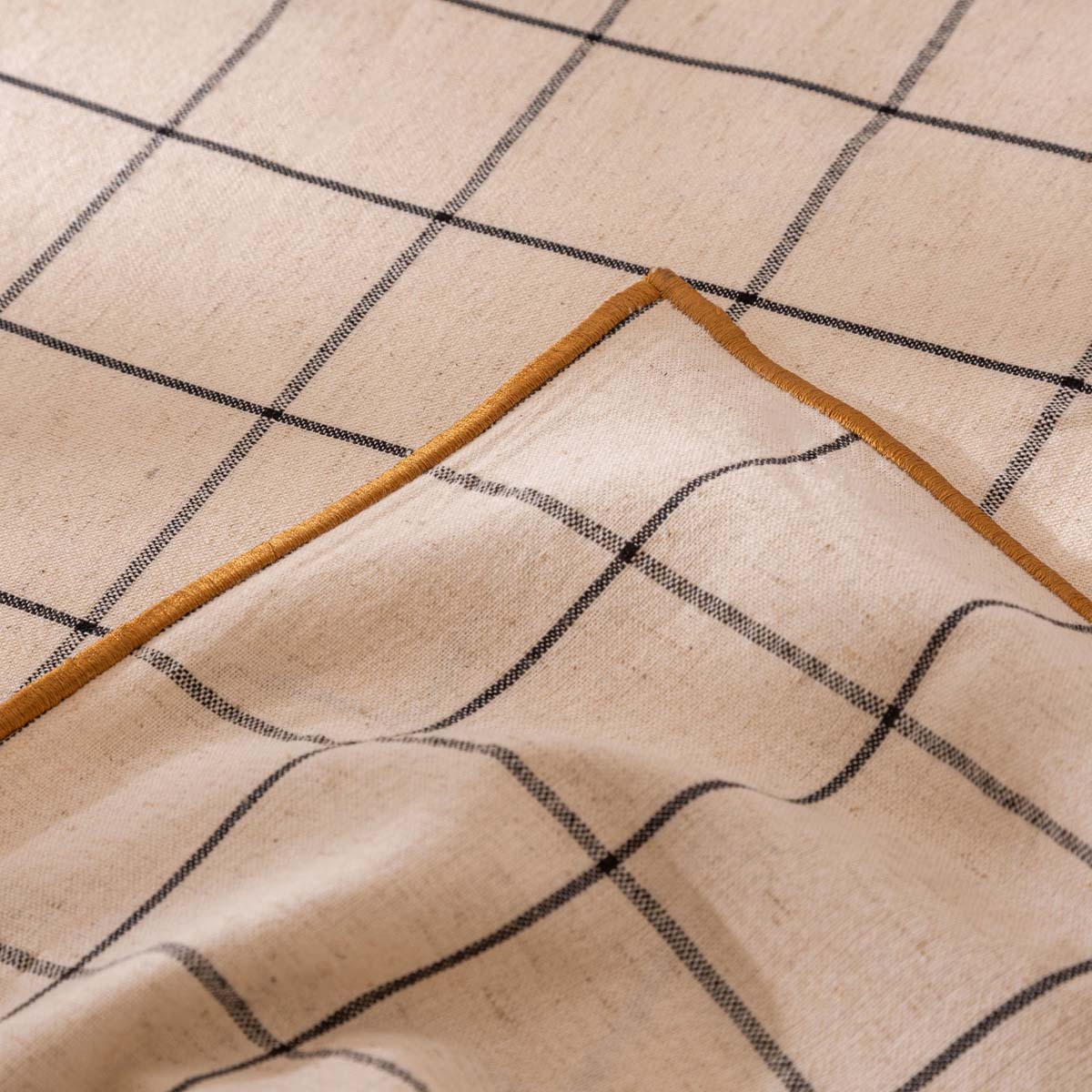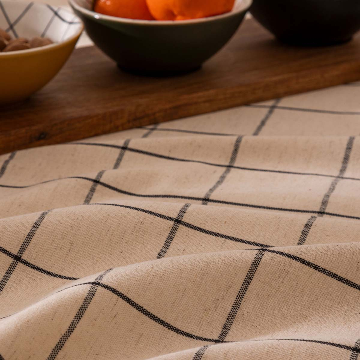 Παραλληλόγραμμο τραπεζομάντηλο κατασκευασμένα από βαμβάκι σε μπεζ χρώμα με μαύρο καρό σχέδιο. Ένα ξεχωριστό τραπεζομάντηλο που θα ταιριάξει μοναδικά με το τραπέζι της κουζίνας ή της τραπεζαρίας σας.