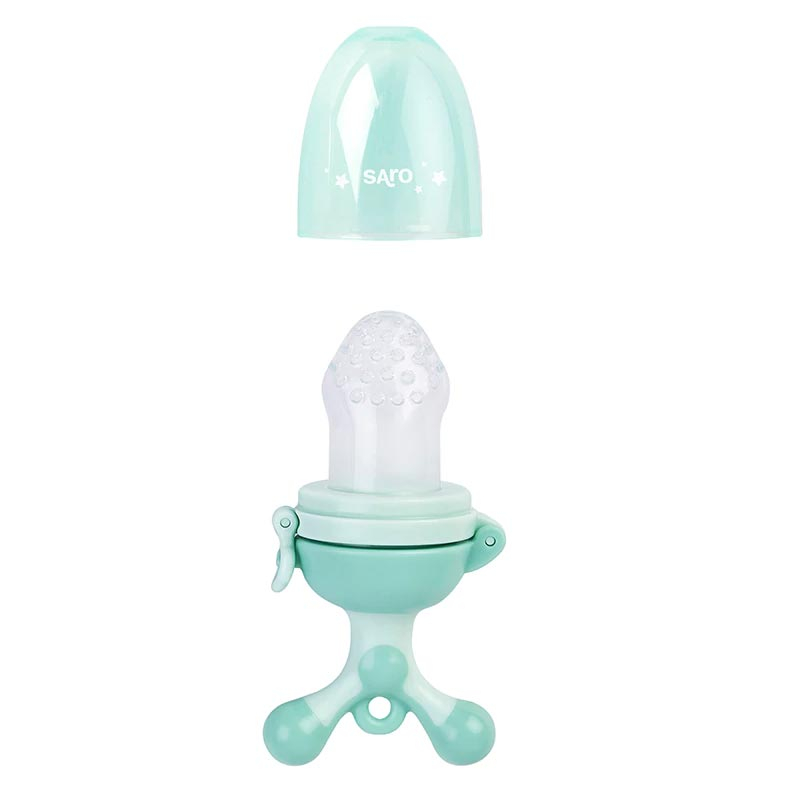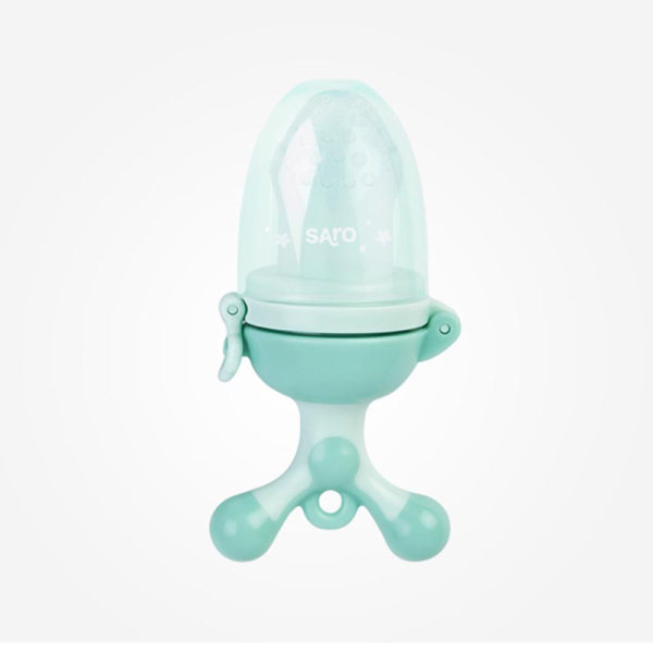 Τροφοδότης φαγητού σε βεραμάν χρώμα από την εταιρία Saro. Κατασκευασμένο από 100% μαλακή σιλικόνη χωρίς BPA, είναι απόλυτα ασφαλές για τα μικρά παιδιά. Απλώς τοποθετείτε το φαγητό που θέλετε, κλείνετε τις λαβές και περιστρέφετε την βάση για να πολτοποιήσετε το φαγητό. Έχει καινοτόμο σύστημα περιστροφής που σπρώξει το φαγητό με ευκολία χωρίς να συσσωρεύετε στο κάτω μέρος. Με αυτόν τον τρόπο μπορεί το παιδί σας να ανακαλύψτε άφοβα νέες γεύσεις αλλά και να ανακουφίσει τους πόνους των δοντιών και των ούλων. Διαθέτει πρακτικό καπάκι για να διατηρεί το στόμιο καθαρό, ενώ δεν απορροφούνται οσμές ή γεύσεις. Είναι εύκολο στο καθάρισμα, ενώ οι τρύπες που έχει το στόμιο βοηθούν το παιδί σας να φάει άφοβα. Έχει ιδανικό μέγεθος για να μπορεί το μικρό σας να τρώει μόνο του. Κατάλληλο για ηλικίες 6+ μηνών.