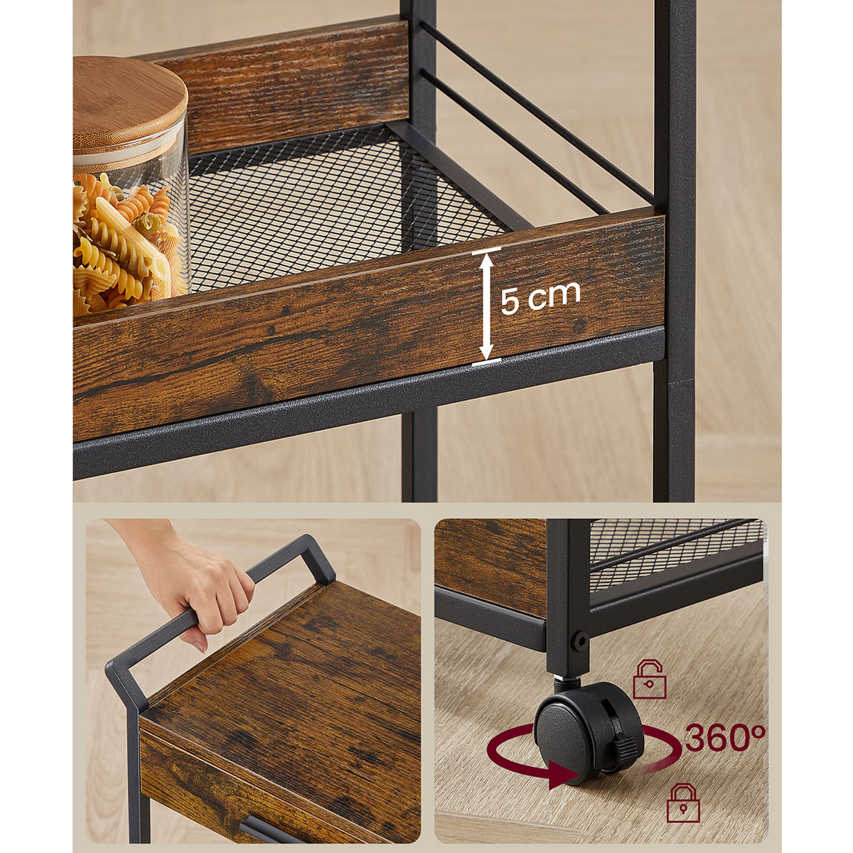 | VasagleΤρόλεϊ/Ραφιέρα 3 Θέσεων Με Συρτάρι (46.2x30x70.5) Vasagle LRC048KD01