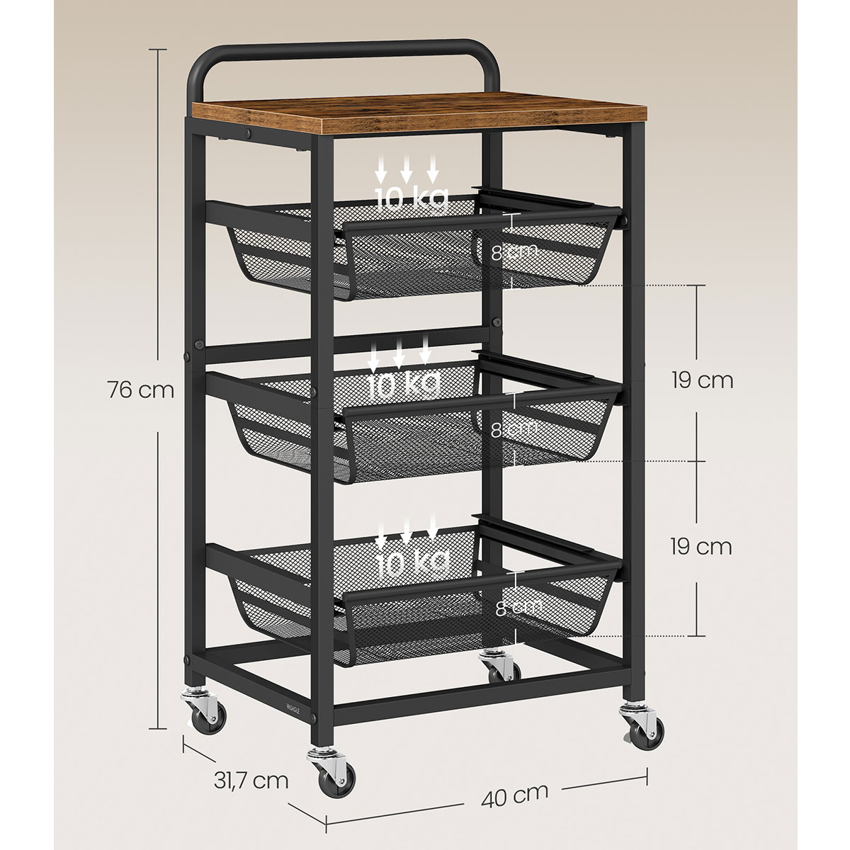 | VasagleΤρόλεϊ/Ραφιέρα 4 Θέσεων (40x31.7x76) Vasagle LRC040K01