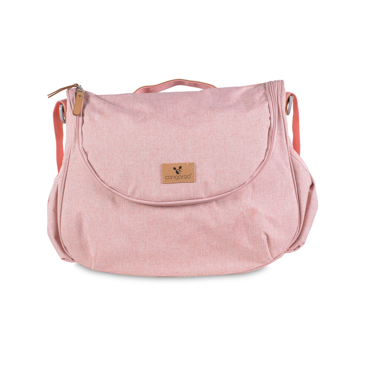 Τσάντα αλλαγής πάνας της εταιρείας Cangaroo σε ροζ χρώμα. Η κεντρική θήκη κλείνει με φερμουάρ ενώ διαθέτει άνετο χώρο για να τοποθετήσετε όλα όσα χρειάζεστε. Με πολλαπλές θήκες και τσέπες, για να οργανώνετε τα πράγματά σας με ευκολία και ειδικές θήκες για μπιμπερό. Εξωτερικά διαθέτει 2 τσέπες στα πλάγια για επιπλέον χώρο αποθήκευσης. Το ρυθμιζόμενο λουρί της σας επιτρέπει να την τοποθετήσετε στον ώμο σας ή να την κρεμάσετε στο καρότσι του μωρού. Περιλαμβάνεται στρωματάκι αλλαγής.