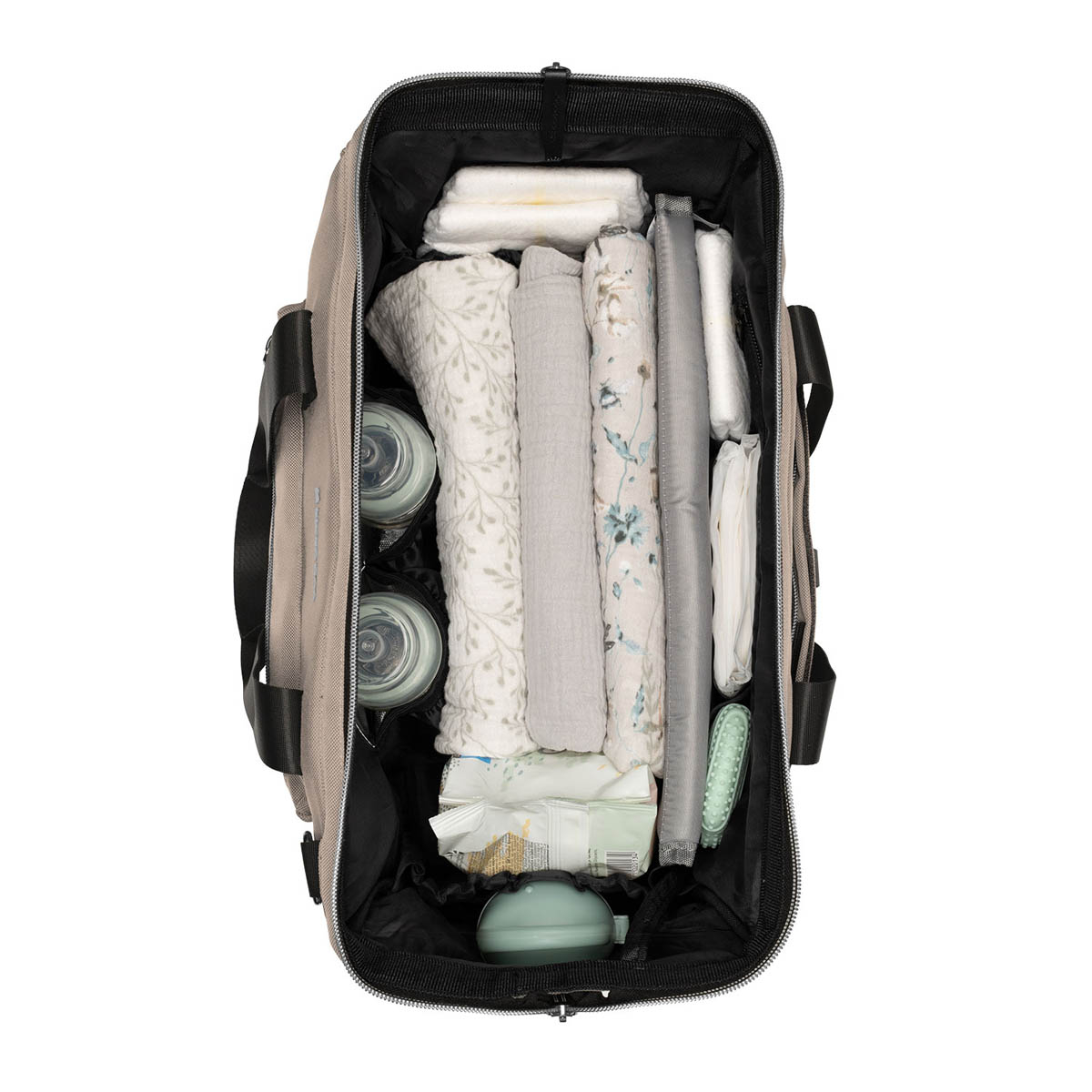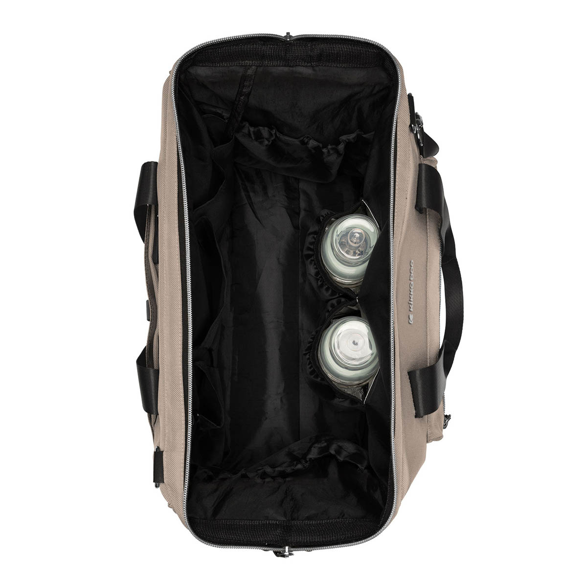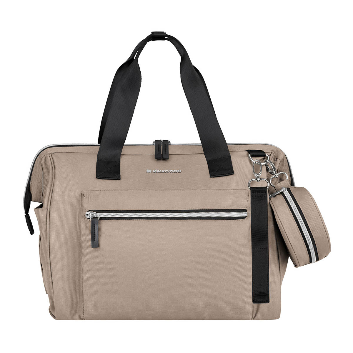 Τσάντα αλλαγής πάνας σε μπεζ χρώμα από την εταιρεία Kikka Boo. Είναι κατασκευασμένη από ύφασμα υψηλής ποιότητας, με σύνθεση 100% polyester που καθαρίζεται εύκολα με υγρό πανάκι. Εσωτερικά διαθέτει τσέπες για πάνε και ρούχα, 2 θερμομονωτικές θήκες για μπιμπερό και αδιάβροχη τσέπη για βρεγμένα ρούχα. Εξωτερικά διαθέτει 1 μεγάλη τσέπη με φερμουάρ 2 στα πλαϊνά και 1 στο πίσω μέρος. Περιλαμβάνει μαλακό στρωματάκι αλλαξιέρα για να αλλάζετε οπουδήποτε την πάνα του μωρού σας και ειδικούς ιμάντες για να την κρεμάτε στο καρότσι. Ο ιμάντας στο πίσω μέρος βοηθά στην εύκολη σύνδεση της τσάντας στο χερούλι της βαλίτσας σας. Με αφαιρούμενο πορτοφολάκι για εύκολη πρόσβαση στα χρήματά σας. Πρακτική και άνετη, θα γίνει το απαραίτητο αξεσουάρ σε κάθε έξοδό σας με το παιδί.