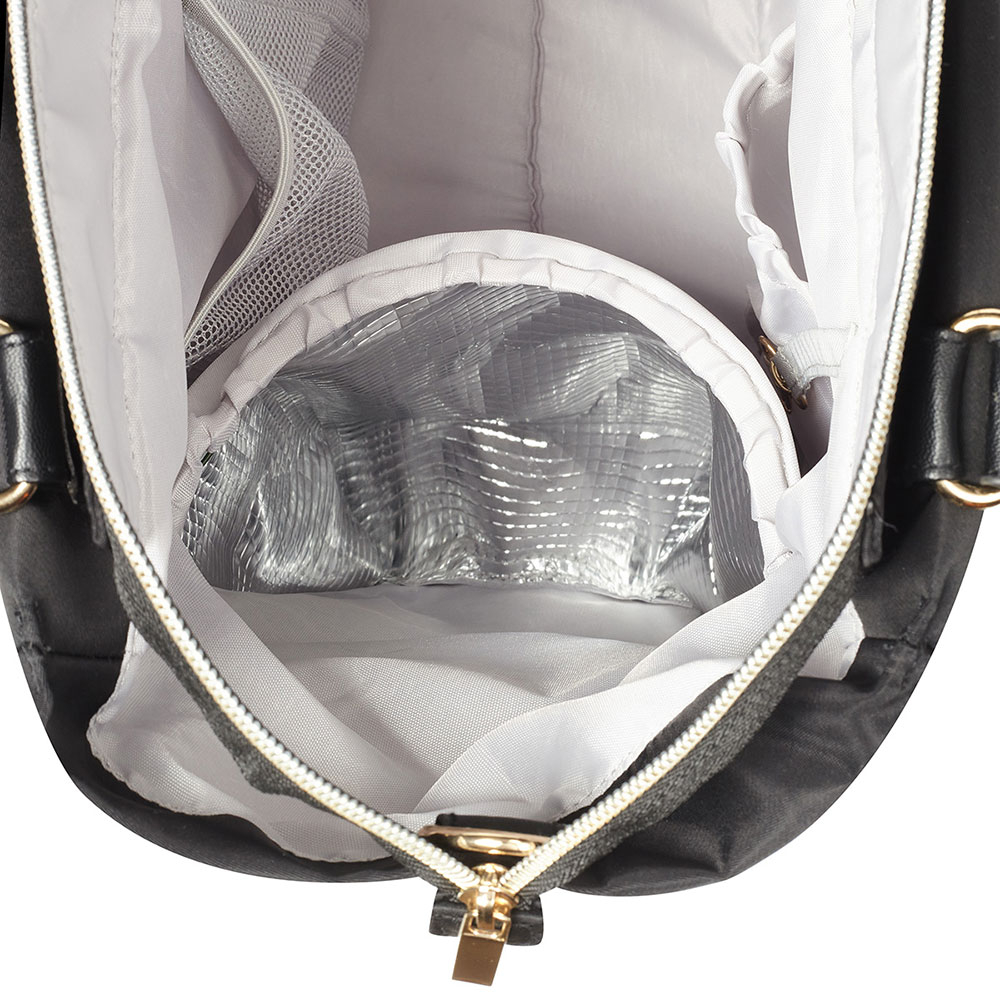 Τσάντα αλλαξιέρα από την εταιρεία BabyOno σε μαύρο χρώμα, με φινετσάτο σχεδιασμό. Μοντέρνα, ευρύχωρη και πρακτική, είναι η ιδανική τσάντα για τις καθημερινές σας βόλτες με το μωρό, το ταξίδι αλλά και κάθε σας μετακίνηση. Μπορείτε να την κρεμάσετε στον ώμο ή την πλάτη, ενώ ο ειδικός σχεδιασμός της με αφαιρούμενους ιμάντες, σας επιτρέπει να προσαρμόζεται και στο καρότσι. Διαθέτει 11 τσέπες για να χωράει όλα τα απαραίτητα αντικείμενα για το μωρό σας. Εξωτερικά, διαθέτει τσέπες για μπουκάλι και για μωρομάντηλα και μία μεγαλύτερη τσέπη που κλείνει με φερμουάρ. Εσωτερικά, διαθέτει πολλές τσέπες για να παραμένει πάντα τακτοποιημένη και οργανωμένη, προσφέροντάς σας μοναδική εργονομία. Η ισοθερμική εσωτερική τσέπη, διατηρεί την θερμοκρασία του μπουκαλιού για περισσότερη ώρα, ώστε να μην χρειάζεται να ζεσταίνετε ξανά το περιεχόμενό του. Είναι κατασκευασμένη από πολυεστερικό υλικό με ενισχυμένα στοιχεία που εγγυάται ανθεκτικότητα στις διαφορετικές συνθήκες χρήσης. Καθαρίζεται εύκολα. Περιλαμβάνεται στρωματάκι αλλαγής.