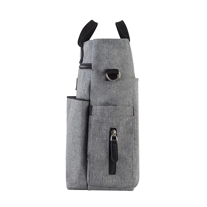 Τσάντα αλλαγής σε γκρι χρώμα από την εταιρία Babywise. Είναι ιδανική για να αποθηκεύετε τα απαραίτητα αντικείμενα που χρειάζεστε για τις βόλτες και τα ταξίδια. Έχει μεγάλο εσωτερικό χώρο αποθήκευσης με 4 θήκες και μία με φερμουάρ. Επιπλέον τα 2 μεγάλα χωρίσματα μπροστά, οι 2 πλαϊνές θήκες για ποτήρι ή μπιμπερό και μωρομάντηλα, η εξωτερική τσέπη με φερμουάρ και το λουράκι για κράτημα στον ώμο, είναι κατάλληλα για να έχετε μαζί σας πάντα ότι χρειαστείτε, με άνεση και ασφάλεια. Μπορείτε να την κρεμάσετε στον ώμο ή στο καρότσι χάρη στα 2 χερούλια για μεταφορά και στα 2 χερούλια για πιάσιμο στο καρότσι.