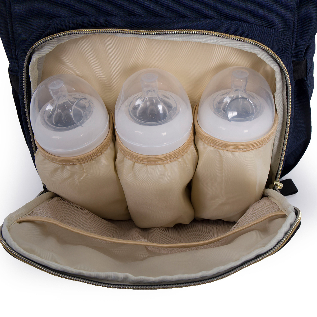 Τσάντα αλλαγής πάνας τύπου back pack σε μπλε χρώμα από την εταιρεία Kikka Boo. Είναι κατασκευασμένη από ύφασμα υψηλής ποιότητας σύνθεσης 100% polyester που καθαρίζεται εύκολα με υγρό πανάκι. Διαθέτει 5 τσέπες στο εσωτερικό μέρος και 6 στο εξωτερικές με φερμουάρ. Υπάρχουν τσέπες για μπουκάλια στα πλαϊνά και τσέπη σχεδιασμένη για εύκολη πρόσβαση σε υγρά μαντηλάκια. Περιλαμβάνει μαλακό στρωματάκι αλλαξιέρα για να αλλάζετε οπουδήποτε την πάνα του μωρού σας. Με ρυθμιζόμενους ιμάντες για να την κρεμάτε στο καρότσι ή να την φοράτε σαν τσάντα ώμου. Πρακτική και άνετη, θα γίνει το απαραίτητο αξεσουάρ σε κάθε έξοδό σας με το παιδί.