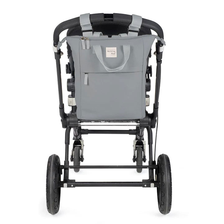 Τσάντα αλλαγής πάνας από την εταιρεία Walking Mum σε γκρι χρώμα. Είναι κατασκευασμένη από 100% ανακυκλωμένο πολυεστέρα (rPet). Το rPET προέρχεται από ανακυκλωμένο πλαστικό PET μπουκαλιών νερού. Η χρήση αυτού του υλικού μειώνει την κατανάλωση νερού, την κατανάλωση ενέργειας και τις εκπομπές CO2. Η Walking Mum προστατεύει το μωρό σας χρησιμοποιώντας τα καλύτερα υφάσματα, απαλλαγμένα από ζαχαρώματα και ουσίες που είναι επιβλαβείς για την υγεία. Αυτό το σακίδιο πλάτης έχει μια μεγάλη κύρια θήκη με τσέπες στο εσωτερικό για να μπορείτε να αποθηκεύσετε όλα τα απαραίτητα για μια μέρα έξω και κλείνει με φερμουάρ. Έχει επίσης μια κρυφή εσωτερική θήκη για τα βρεγμένα ρούχα ώστε να απομονώνεται η υγρασία από το υπόλοιπο σακίδιο. Επίσης, έχει θήκες με θερμική επένδυση για τα μπουκάλια. Οι δύο πλαϊνές θήκες σας επιτρέπουν να έχετε μαζί σας τα μπουκάλια του μωρού ενώ η μπροστινή θήκη με φερμουάρ σας επιτρέπει να αποθηκεύετε πιο προσωπικά πράγματα ακόμα και το κινητό σας. Το σακίδιο συνοδεύεται από στρωματάκι αλλαξιέρα. Διαθέτει ρυθμιζόμενους ιμάντες ώμου για ευκολία. Τα χερούλια και ιμάντες έχουν επένδυση ώστε να μην προκαλούν ενόχληση λόγω του βάρους. Επίσης έχει 2 ρυθμιζόμενες κοντές λαβές και έναν ελαστικό ιμάντα στην μέση της πίσω πλευράς που διευκολύνουν την τοποθέτηση σε οποιοδήποτε μοντέλο καροτσιού.