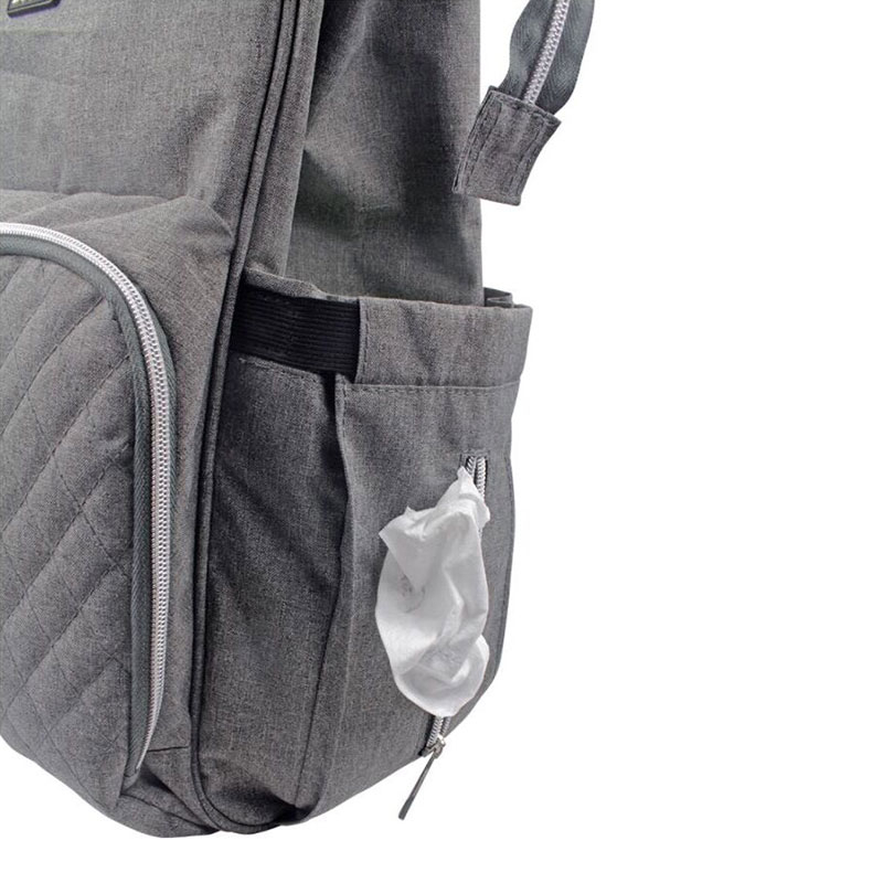 Τσάντα αλλαγής πάνας τύπου back pack σε γκρι χρώμα και καπιτονέ σχέδιο της εταιρείας Dooky. Είναι κατασκευασμένη από ύφασμα υψηλής ποιότητας που καθαρίζεται εύκολα με υγρό πανάκι. Διαθέτει 5 τσέπες στο εσωτερικό μέρος και 6 στο εξωτερικές με φερμουάρ. Υπάρχουν τσέπες για μπουκάλια στα πλαϊνά και τσέπη σχεδιασμένη για εύκολη πρόσβαση σε υγρά μαντηλάκια. Περιλαμβάνει μαλακό στρωματάκι αλλαξιέρα για να αλλάζετε οπουδήποτε την πάνα του μωρού σας. Με ρυθμιζόμενους ιμάντες για να την κρεμάτε στο καρότσι ή να την φοράτε σαν τσάντα ώμου. Πρακτική και άνετη, θα γίνει το απαραίτητο αξεσουάρ σε κάθε έξοδό σας με το παιδί. Πιστοποιημένη με BSCI και Vegan (δεν χρησιμοποιήθηκαν ζωικές ουσίες κατά την κατασκευή της).