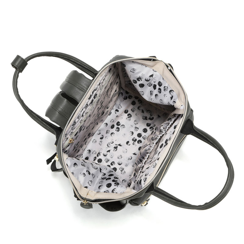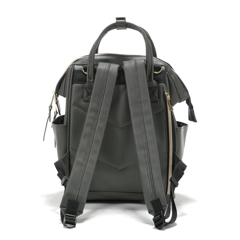 Το σακίδιο πλάτης Dolce Vita της εταιρείας La Millou έχει εντυπωσιακό σχεδιασμό και ταυτόχρονα προσφέρει άνεση και λειτουργικότητα. Κατασκευασμένο από δερματίνη σε σκούρο γκρι χρώμα με εσωτερική υφασμάτινη επένδυση και μεγάλη χωρητικότητα. Η κύρια θήκη έχει φερμουάρ και διαθέτει 1 τσέπη με φερμουάρ, 1 τσέπη με λάστιχο και ιμάντα με γάντζο. Η εξωτερική τσέπη στην μπροστινή πλευρά έχει φερμουάρ και αρκετό χώρο για να αποθηκεύσετε μικροπράγματα του μωρού ή δικά σας αντικείμενα, όπως το κινητό και τα κλειδιά. Οι πλαϊνές τσέπες είναι ιδανικές για να τοποθετήσετε τα άμεσα αναγκαία αντικείμενά σας όπως ομπρέλα, μπιμπερό, παγούρι ή μωρομάντηλα. Η πίσω πλευρά έχει μαλακή επένδυση που προσφέρει άνεση και μία επιπλέον τσέπη με φερμουάρ. Οι ρυθμιζόμενοι ιμάντες προσαρμόζονται στο ύψος που επιθυμείτε ενώ οι πρακτικές λαβές της σας επιτρέπουν να την μεταφέρετε σαν τσάντα. Οι δύο μεταλλικοί κρίκοι της σας δίνουν την δυνατότητα να την κρεμάσετε στο καρότσι του μωρού. Όλα τα προϊόντα της εταιρείας La Millou είναι χειροποίητα.