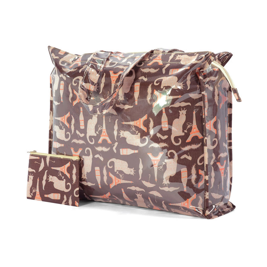 Τσάντα από την εταιρεία Benzi ιδανική για ψώνια ή οποιαδήποτε άλλη χρήση. Είναι αδιάβροχη, κατασκευασμένη από PVC σε καφέ απόχρωση με μπεζ μοντέρνο σχέδιο. Κλείνει με φερμουάρ και διαθέτει μεγάλα χερούλια για πρακτικότητα.
