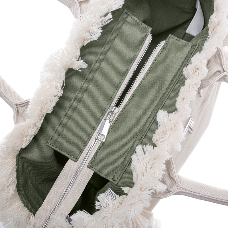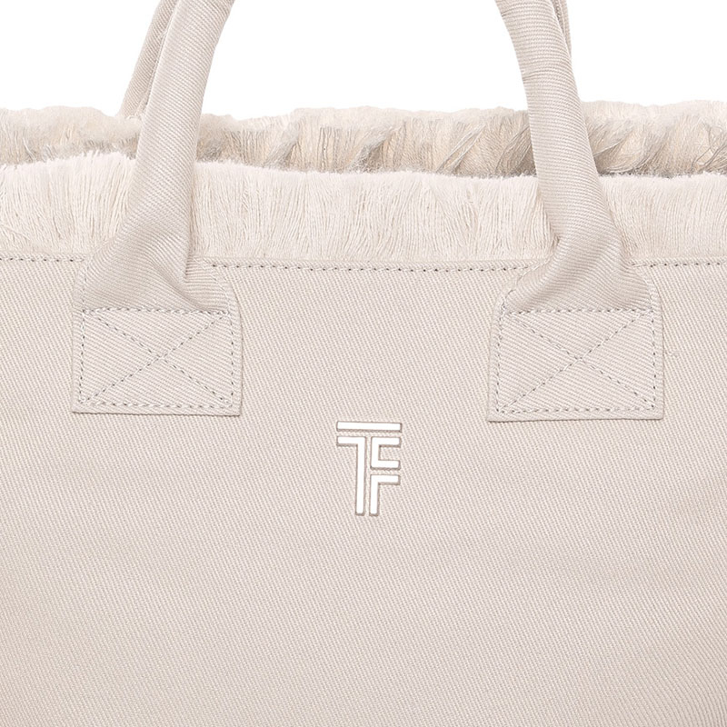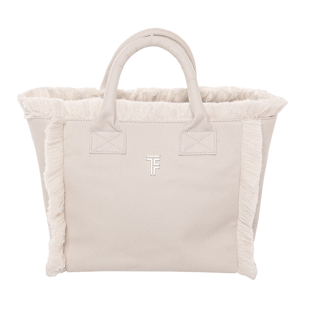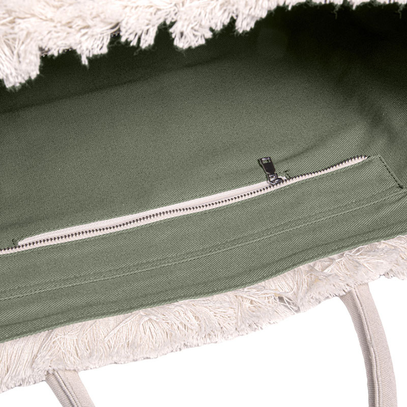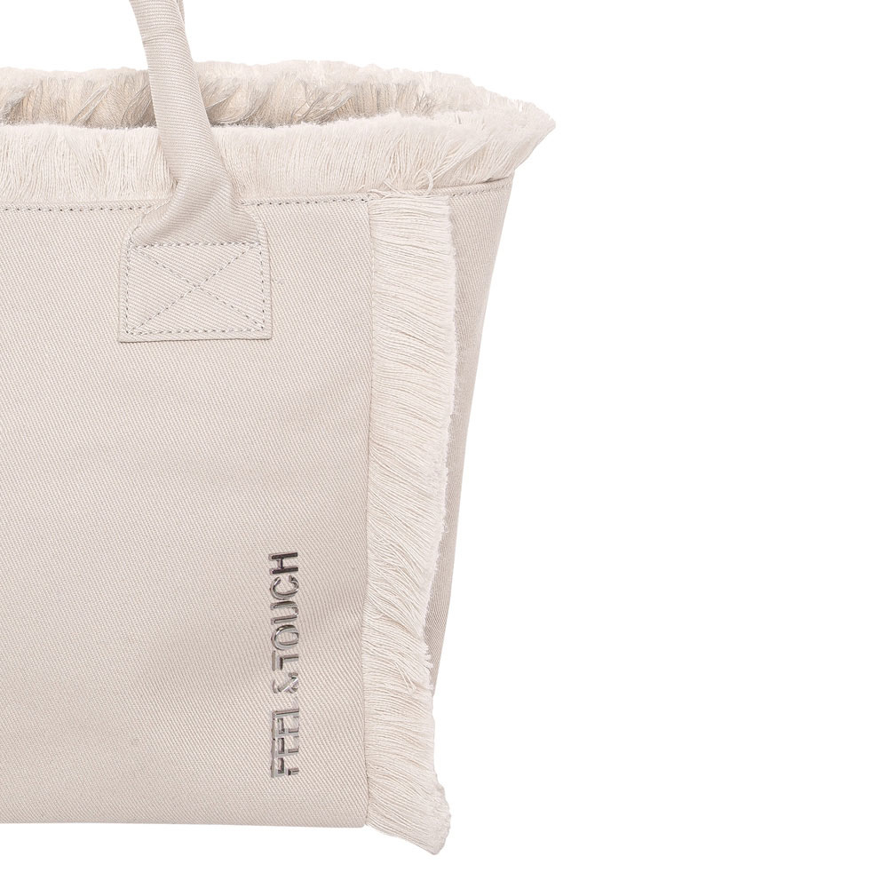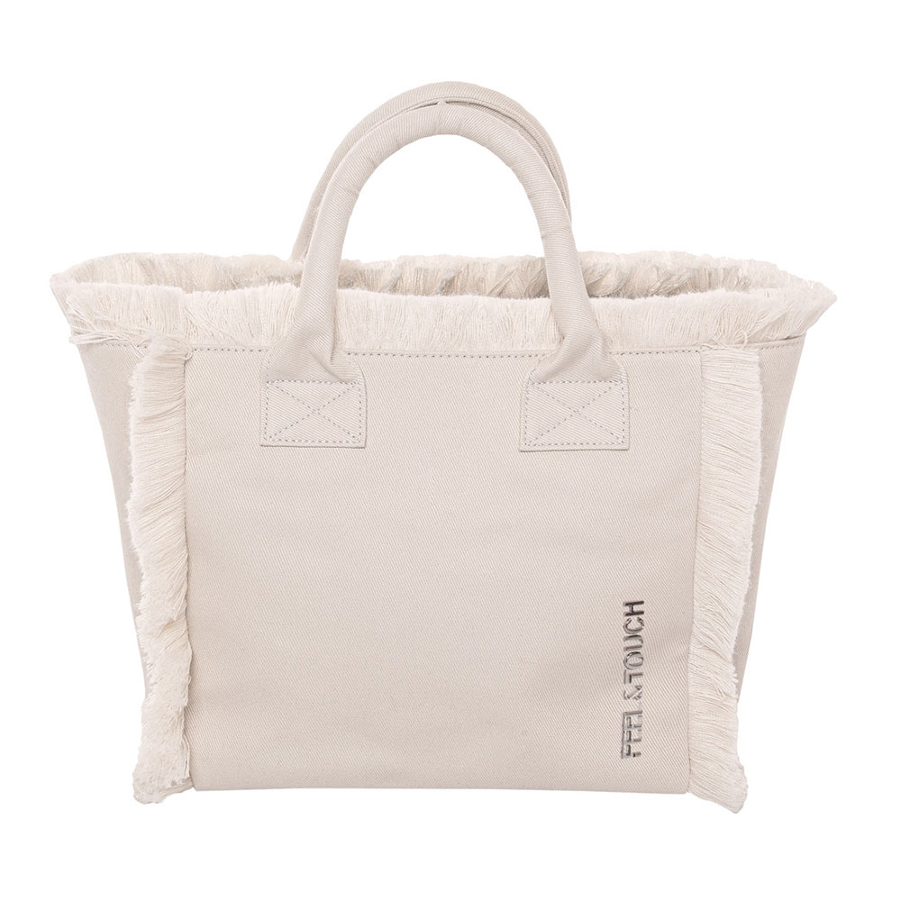 Τσάντα θαλάσσης από την εταιρεία Feel & Touch σε εκρού χρώμα με διακοσμητικά κρόσια. Είναι κατασκευασμένη από 100% Αιγυπτιακό βαμβάκι που την καθιστά ιδιαίτερα μαλακή και ανθεκτική. Διαθέτει χερούλια για να μπορείτε να την κρατάτε. Κλείνει με φερμουάρ. Διαθέτει άφθονο χώρο και θήκες για να τακτοποιείτε τα μικροπράγματά σας. Συνδυάστε την με τα υπόλοιπα είδη της ίδιας σειράς για ένα ολοκληρωμένο σετ.