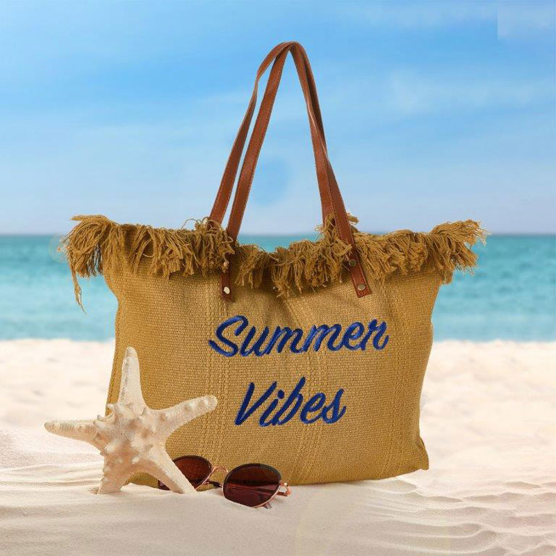 Τσάντα παραλίας σε καφέ χρώμα διακοσμητικά κρόσια και μοντέρνο σχέδιο από την εταιρεία Whitegg . Είναι κατασκευασμένη από 50% βαμβάκι 50% πολυεστέρα. Διαθέτει χερούλια από δερματίνη για να την κρεμάτε στον ώμο σας. Διαθέτει κλείσιμο με κουμπί. Ιδανική τσάντα για να μεταφέρετε την πετσέτα σας, τα αντηλιακά σας και ότι άλλο χρειάζεστε για την παραλία.