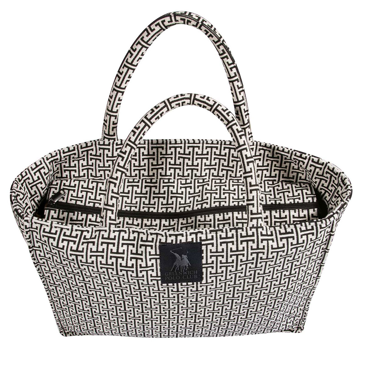 Τσάντα θαλάσσης μεγάλη από τον οίκο Greenwich Polo Club που προσφέρει ποιότητα, στυλ και πολυτέλεια. Έχει εκρού χρώμα, με μαύρες λεπτομέρειες και γεωμετρικό σχέδιο. Είναι κατασκευασμένη εσωτερικά και εξωτερικά από 100% polyester που την καθιστά ανθεκτική. Συνδυάστε την με τα υπόλοιπα είδη της ίδιας σειράς για ένα ολοκληρωμένο αποτέλεσμα. Διαθέτει φερμουάρ. Συνδυάστε την με τα υπόλοιπα είδη του ίδιου σχεδίου για ένα ολοκληρωμένο αποτέλεσμα.