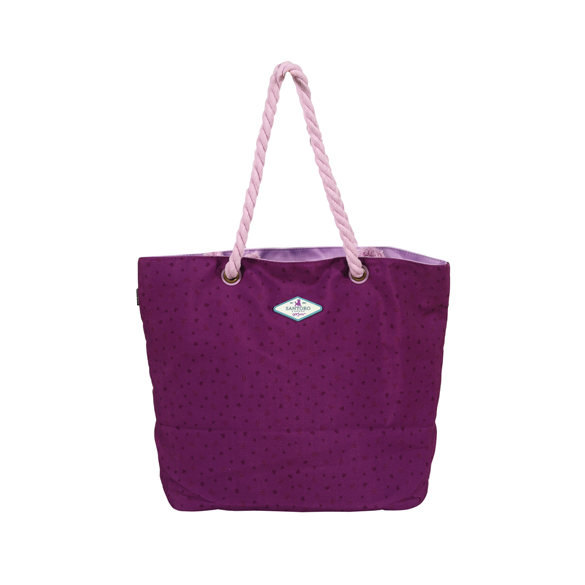 Τσάντα θαλάσσης μεγάλη σε λιλά-πολύχρωμες αποχρώσεις και τον χαρακτηριστικό σχεδιασμό του οίκου Santoro από την εταιρεία Das Kids. Κατασκευασμένη από 100% polyester είναι μαλακή και ανθεκτική. Έχει υφασμάτινες λαβές ενώ δεν διαθέτει κάποιο τρόπο κλεισίματος. Συνδυάστε την με τα υπόλοιπα είδη της ίδιας σειράς για ένα ολοκληρωμένο αποτέλεσμα.