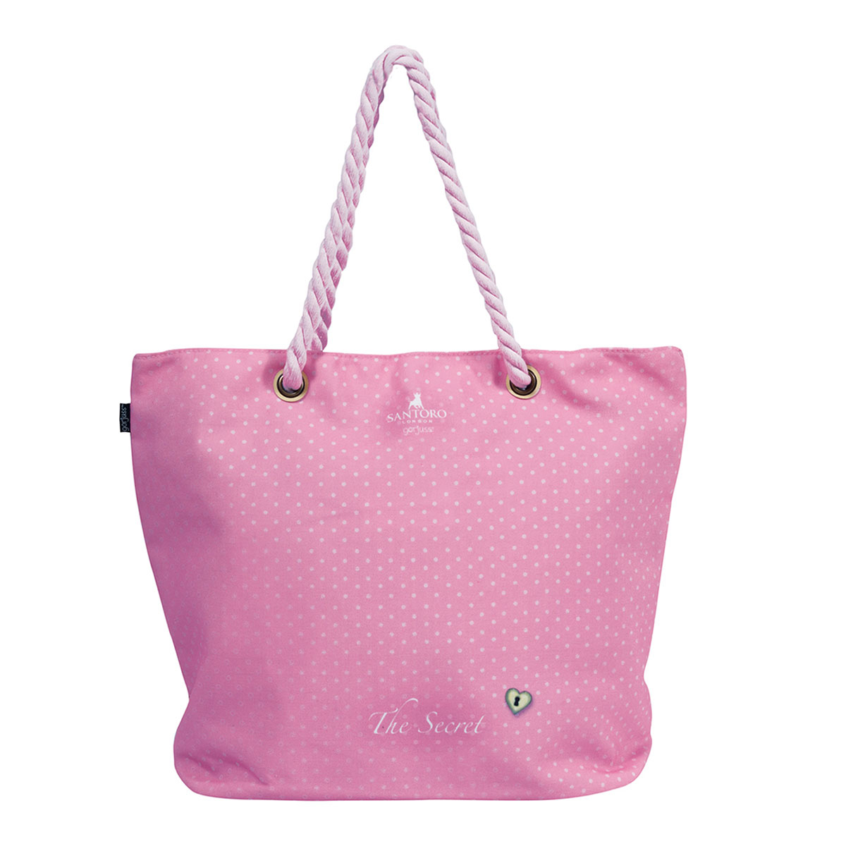 Τσάντα θαλάσσης μεγάλη σε ροζ-πολύχρωμες αποχρώσεις και τον χαρακτηριστικό σχεδιασμό του οίκου Santoro από την εταιρία Das. Κατασκευασμένη από 100% Polyester είναι μαλακή και ανθεκτική. Έχει υφασμάτινες λαβές ενώ δεν διαθέτει κάποιο τρόπο κλεισίματος. Συνδυάστε την με τα υπόλοιπα είδη της ίδιας σειράς για ένα ολοκληρωμένο αποτέλεσμα.