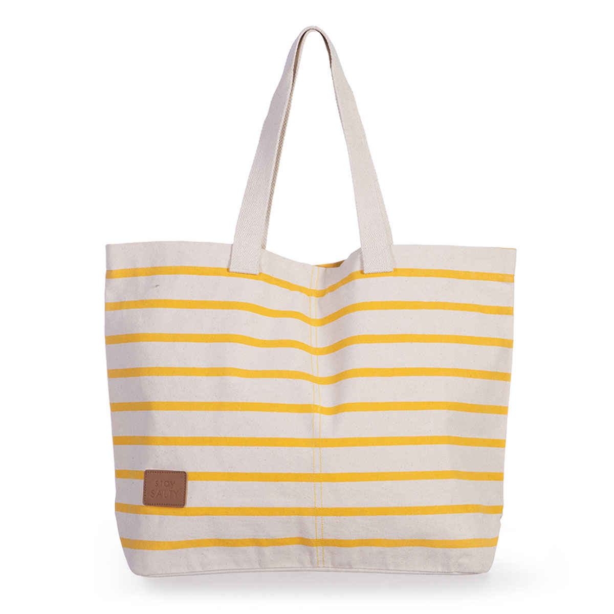 Τσάντα θαλάσσης μεγάλη από την εταιρεία Nef-Nef σε κίτρινο-λευκό χρώμα με ριγέ σχέδιο. Είναι κατασκευασμένη από 100% βαμβάκι βάρους 350gsm που την καθιστά ιδιαίτερα μαλακή. Διαθέτει χερούλια για να μπορείτε να την κρεμάτε και στον ώμο σας. Κλείνει με κουμπί και στο εσωτερικό διαθέτει τσέπη για να οργανώσετε καλύτερα τα αντικείμενά σας. Συνδυάστε την με τα υπόλοιπα είδη της ίδιας σειράς για ένα ολοκληρωμένο σετ. Η εταιρεία Nef-Nef διαθέτει πιστοποίηση Oeko-Tex, που εγγυάται ότι τα προϊόντα της είναι απαλλαγμένα από επιβλαβείς χημικές ουσίες.