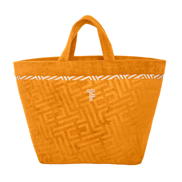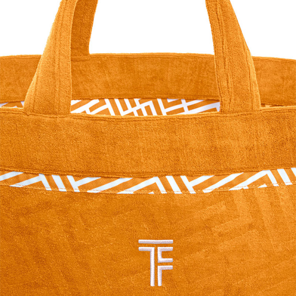 Τσάντα θαλάσσης μεγάλη από την εταιρεία Feel & Touch σε μουσταρδί χρώμα με λευκές λεπτομέρειες. Είναι κατασκευασμένη από πετσετέ ύφασμα με βελουτέ υφή και σύνθεση από 88% Polyester-12% πολυαμίδιο που την καθιστά μαλακή και ανθεκτική. Έχει χερούλια για να μπορείτε να την κρατάτε ή να την κρεμάτε στον ώμο σας. Διαθέτει άφθονο χώρο και 4 θήκες για τα πράγματά σας. Η εσωτερική επένδυση είναι από αδιάβροχο ύφασμα που προσφέρει επιπλέον προστασία από την υγρασία. Δεν διαθέτει φερμουάρ ή κουμπί για να κλείνει, προσφέροντας εύκολη πρόσβαση στα αντικείμενά σας. Συνδυάστε την με τα υπόλοιπα είδη της ίδιας σειράς για ένα ολοκληρωμένο σετ.