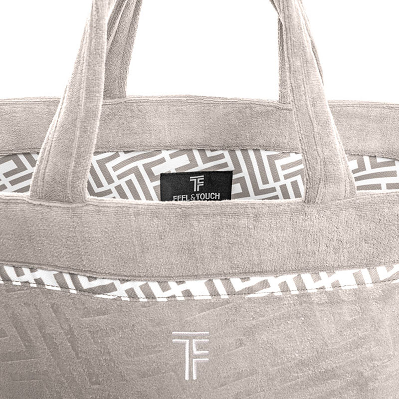 Τσάντα θαλάσσης μεγάλη από την εταιρεία Feel & Touch σε ροζ χρώμα με λευκές λεπτομέρειες. Είναι κατασκευασμένη από πετσετέ ύφασμα με βελουτέ υφή και σύνθεση από 88% Polyester-12% πολυαμίδιο που την καθιστά μαλακή και ανθεκτική. Έχει χερούλια για να μπορείτε να την κρατάτε ή να την κρεμάτε στον ώμο σας. Διαθέτει άφθονο χώρο και 4 θήκες για τα πράγματά σας. Η εσωτερική επένδυση είναι από αδιάβροχο ύφασμα που προσφέρει επιπλέον προστασία από την υγρασία. Δεν διαθέτει φερμουάρ ή κουμπί για να κλείνει, προσφέροντας εύκολη πρόσβαση στα αντικείμενά σας. Συνδυάστε την με τα υπόλοιπα είδη της ίδιας σειράς για ένα ολοκληρωμένο σετ.